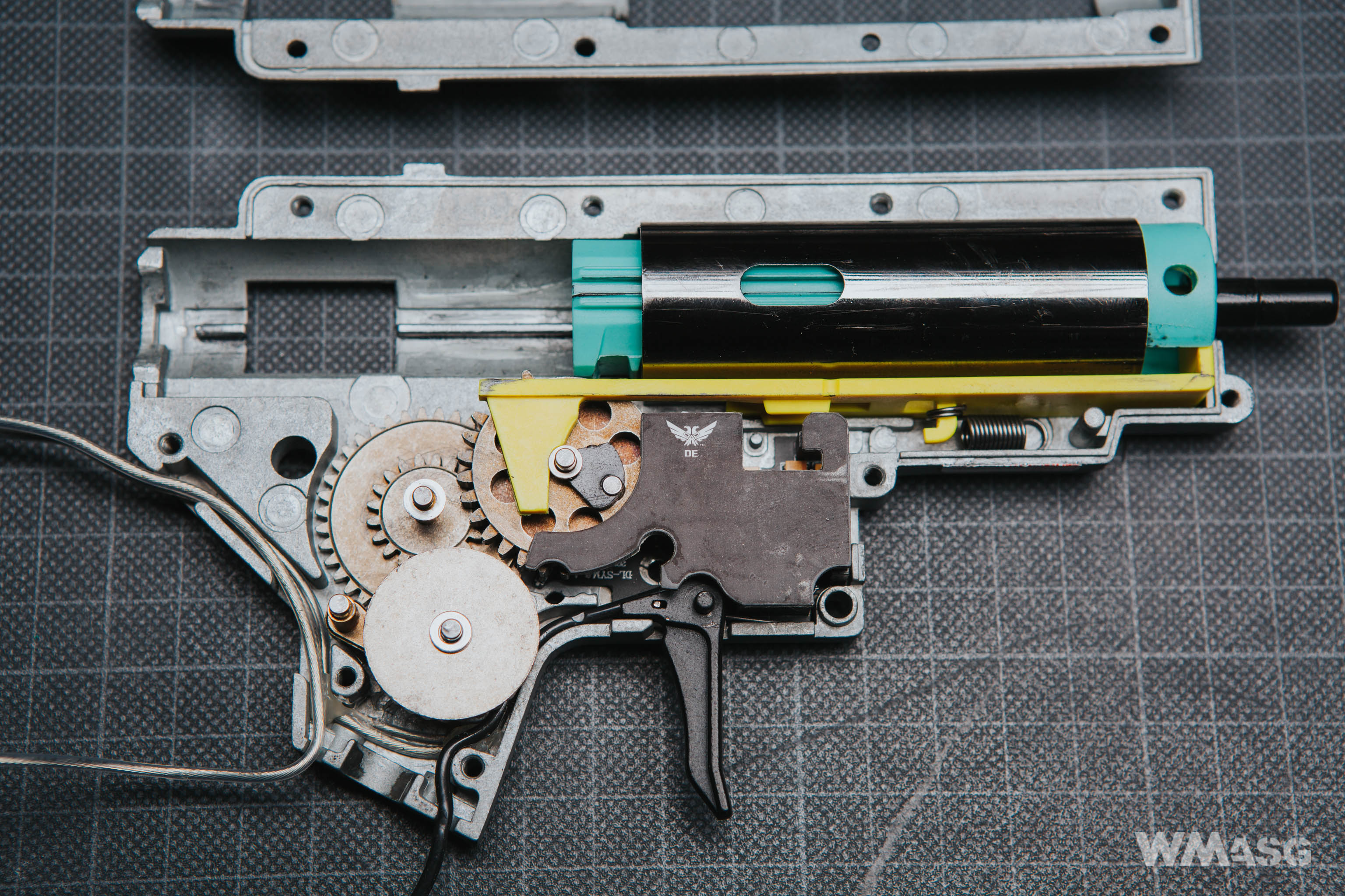 All M90X replicas are driven by the same mechanism based on a standard V2 gearbox with a quick spring change system that can be done from the outside, without opening the replica. However, it is necessary to disassemble the stock and the buffer tube.