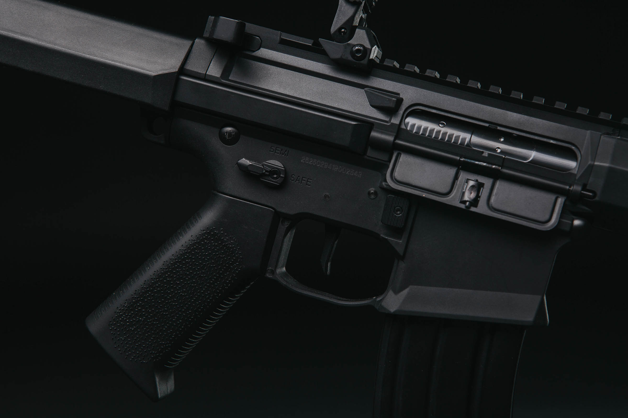 The design of the system itself is obviously nothing revolutionary and replicates the already known solutions, but it is worth noting that the Falcon system has no mechanical parts as the position of the sector gear and the movement of the trigger and the selector plate are monitored by optical sensors. And while testing it with a flashlight from different angles, we were unable to activate the system without pressing the trigger, which, unfortunately, happens to the products of some other manufacturers.
