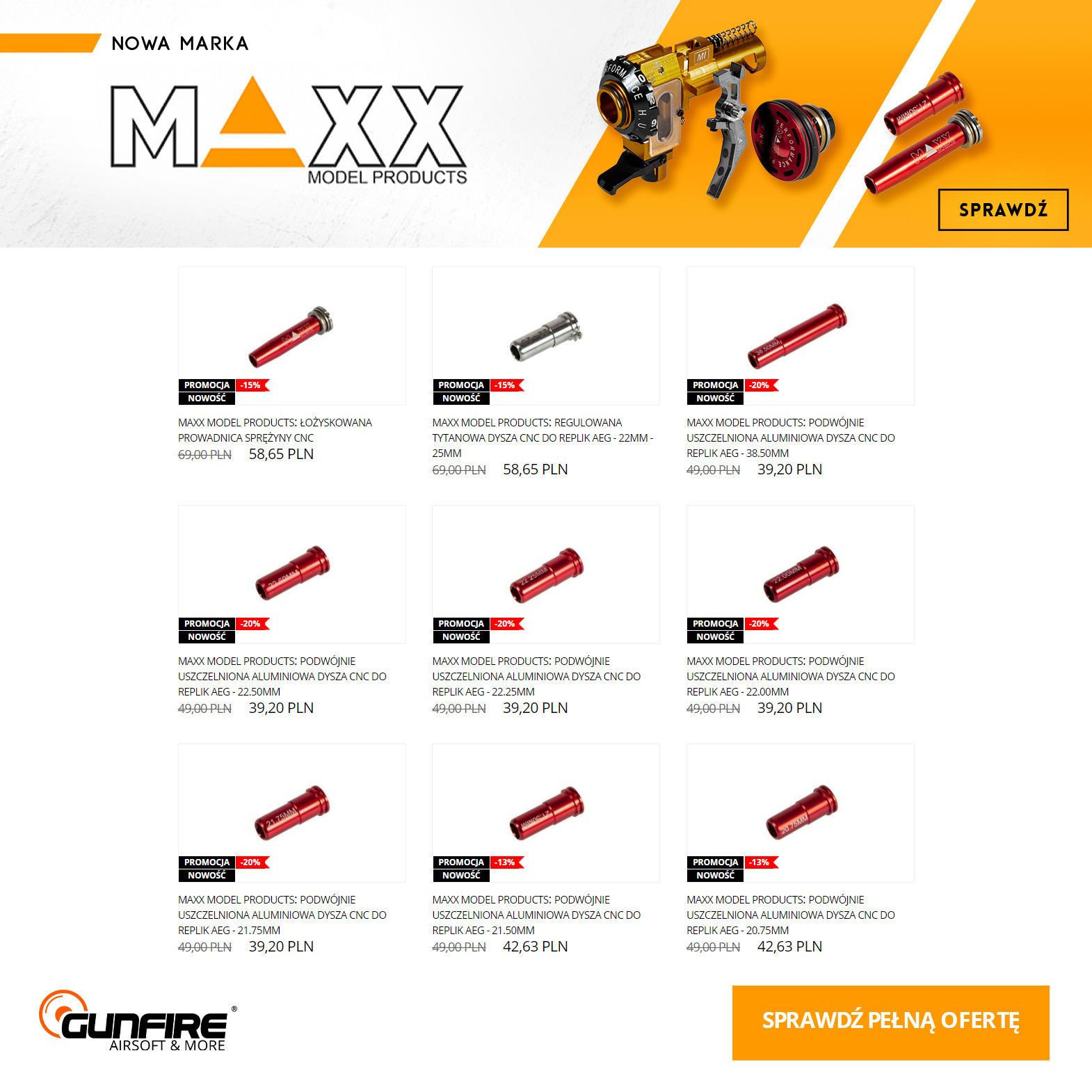 Maxx Model Products is a completely new brand in the Gunfire's offer. In the Maxx Model parts catalog you can find parts from the absolutely top shelf, including advanced Hop-up chambers, nozzles of various sizes, and triggers made on precision CNC machines.