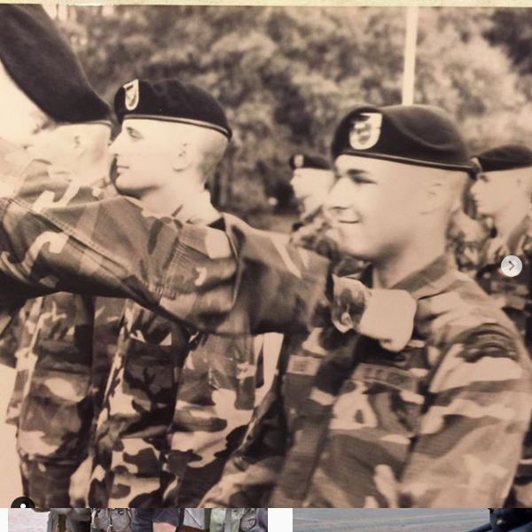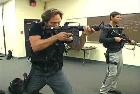 Eric Bana and William Fichtner practicing moving with a carbine in preparation for the "Black Hawk Down"