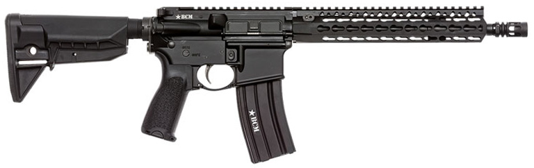 The first is a BCM AR-15 with a KMR-A10 handguard, a EoTech EXPS sight with a G23 magnifier, a AAC M4-2000 silencer, a laser sight (probably the OTAL) and a BCM Gunfighter Vertical Grip.