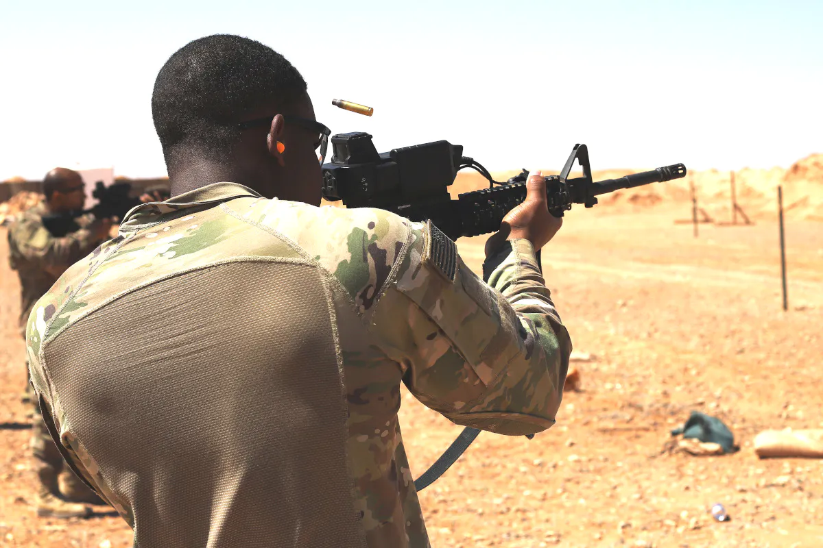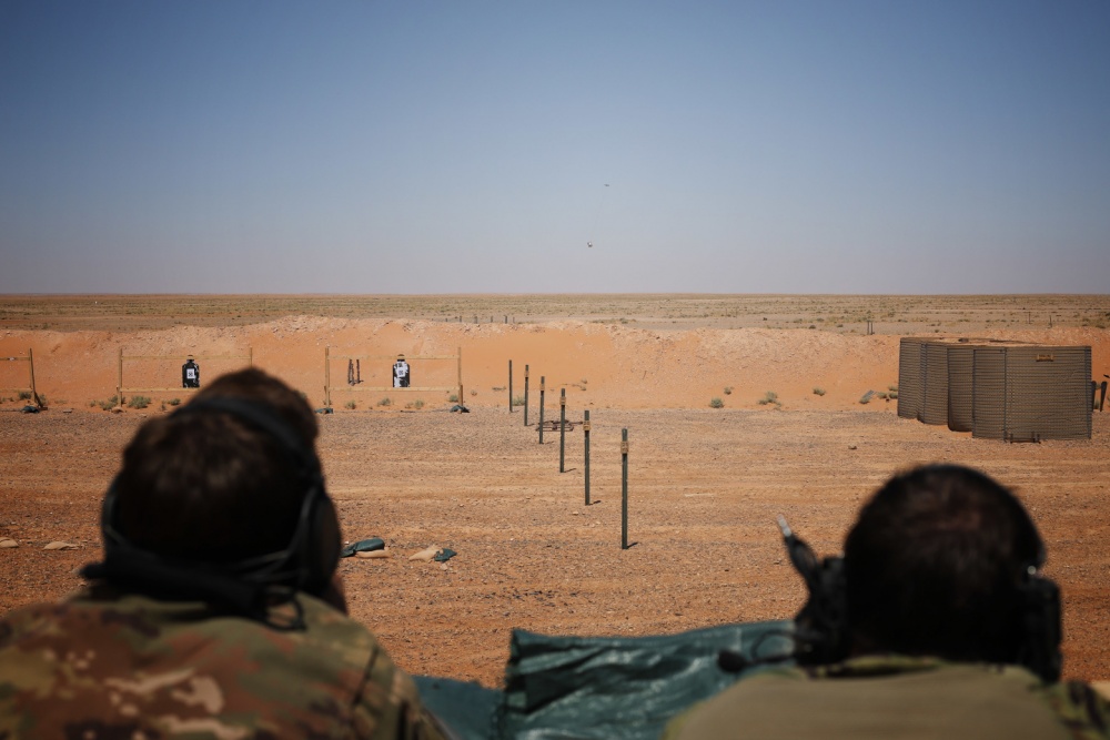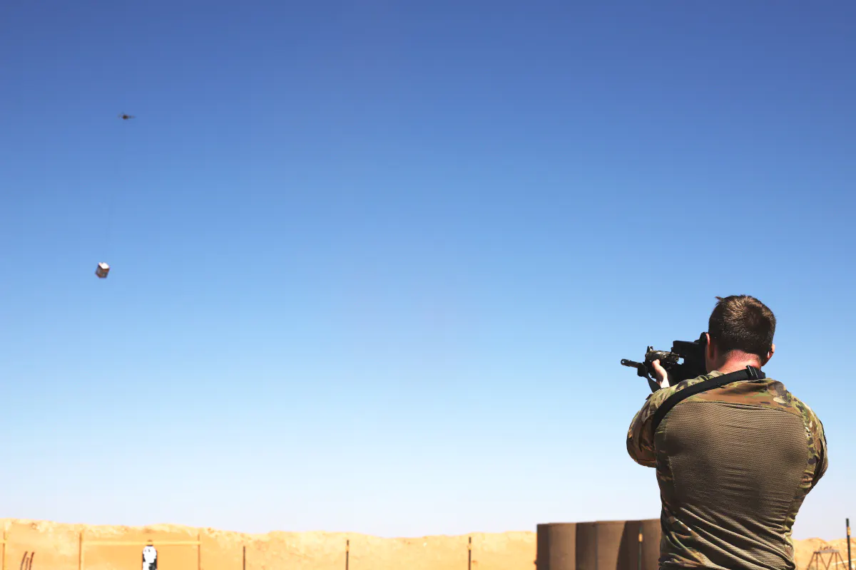 Soldiers from the Special Operations Joint Task Force - Operation Inherent Resolve (SOJTF-OIR) were photographed during shooting tests firing at drones carrying wooden boxes. As statistics show, explosives carried by drones are a threat often encountered by American soldiers fighting in Syria and Iraq.