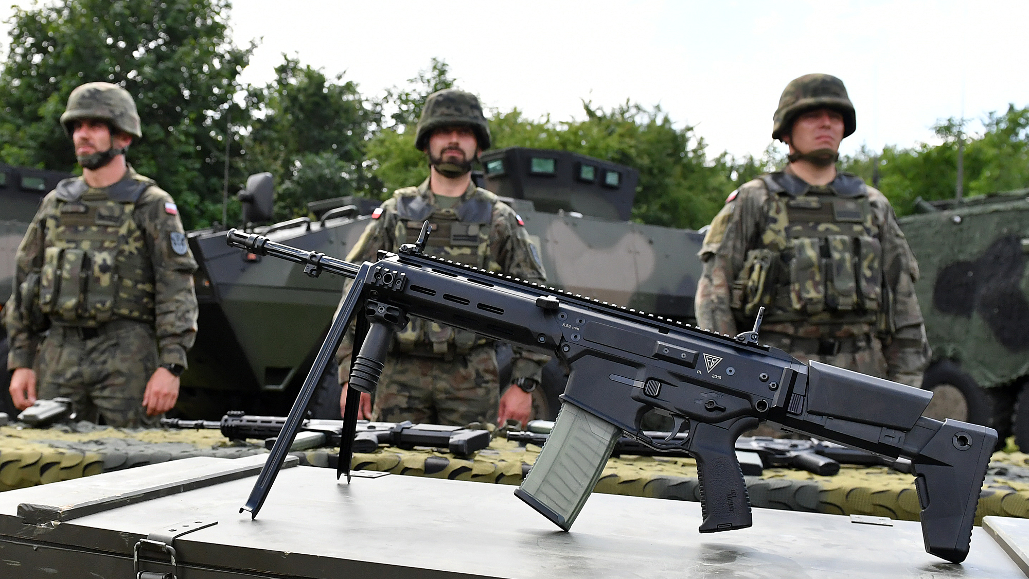 During the visit, Minister Błaszczak handed over two command vehicles based on the KTO Rosomak wheeled APC platform, MSBS GROT carbines, VIS 100 pistols and BOR sniper rifles to the unit.