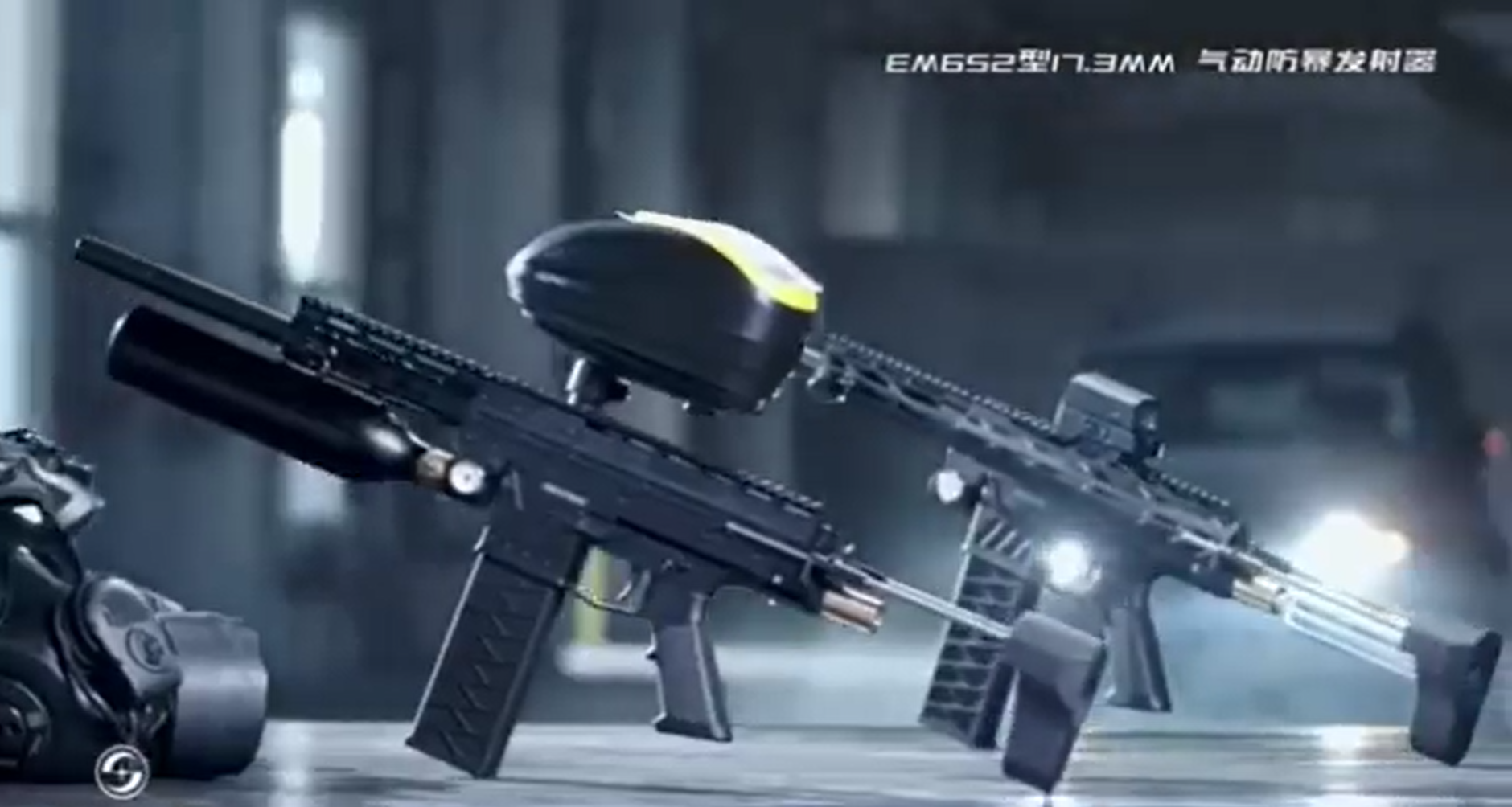 Tak, E&L zapowiedziało zasilany sprężonym powietrzem karabinek pneumatyczny do tłumienia zamieszek. Na zaprezentowanym materiale wideo można zauważyć wachlarz zastosowanej amunicji (standardowej paintballowej 17,3mm) : od zwykłej z farbą, poprzez ceramiczną do rozbijania szyb, gumowych, po kule pieprzowe.