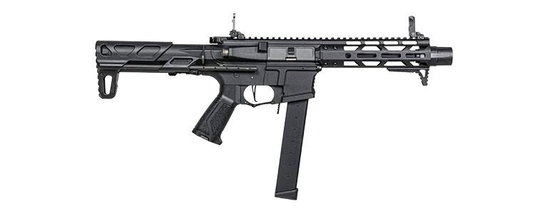Standardowo znajdziemy w niej układ ETU, szybką wymianę sprężyny, rotacyjną komorę HU. Z bardziej widocznych zmian to łoże MLOK, nowa kolba GOS-V8, magazynki o pojemności 105 kulek GOM V2 czy inny chwyt pistoletowy, w którym standardowo znajdziemy silnik Ifrit 25K. Pojawią się nowe wersje ze składaną kolbą i nowym systemem "bezprzewodowego" łączenia baterii dzięki mechanizmowi znanemu z MXC9.
