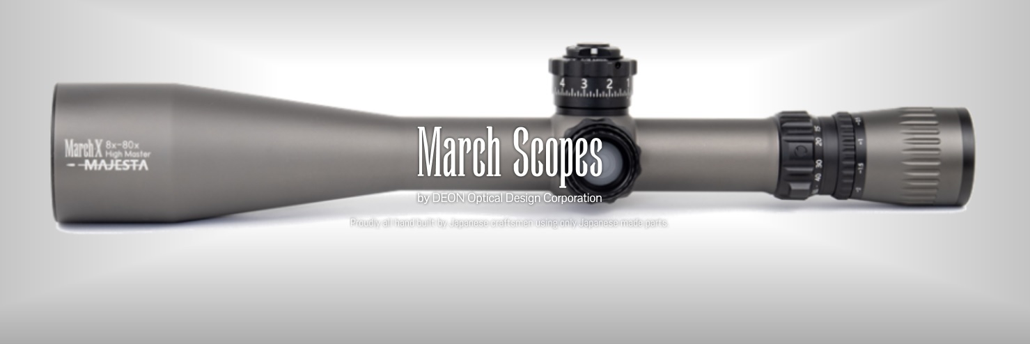 March Scopes to japońska marka należąca do Deon Optical Design, znana z tworzenia lunet celowniczych najwyższej jakości. W portfolio producenta znaleźć można wiele interesujących konstrukcji, jak choćby celownik March Majesta o zmiennym powiększeniu sięgającym aż 80x.