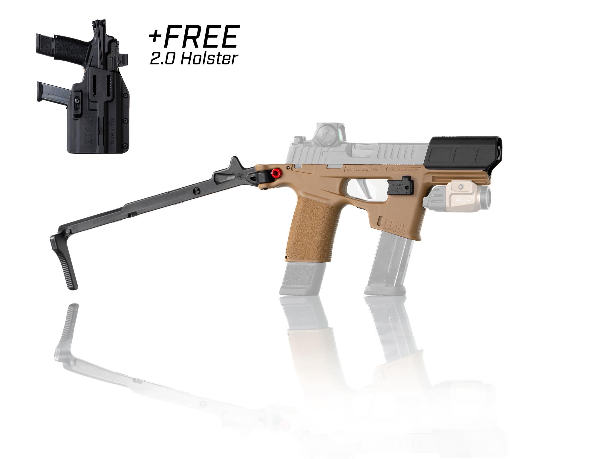 Konwersje FLUX Defense do pistoletów SIG Sauer w postaci modeli FLUX Raider 320 i FLUX Raider 365 są projektami dostępnymi na rynku już jakiś czas. Po zdobyciu pewnej grupy klientów dzięki swojemu innowacyjnemu projektowi, rozwiązaniom oraz wykonaniem, postanowiono dalej rozwijać te projekty. Owocem tej decyzji jest nowy wariant FLUX Raider 365 w wariancie Ultralight. Jak wskazuje sama nazwa, nowy wariant charakteryzuje się niższą wagą niższą o 30% (z 375 g do 250 g) w porównaniu do pierwowzoru, co niesie ze sobą oczywiste zalety. W celu uzyskania niższej wagi zrezygnowano z wykorzystania aluminium w konstrukcji ramy na rzecz wzmacnianych polimerów, zachowując wszystkie funkcje takie jak mechanizm jednoczesnego zwalniania zapasowego magazynka i zrzucania głównego magazynka, możliwość montażu optyki i oświetlenia czy składana kolba (która nie jest już kompatybilna z poprzednim modelem).