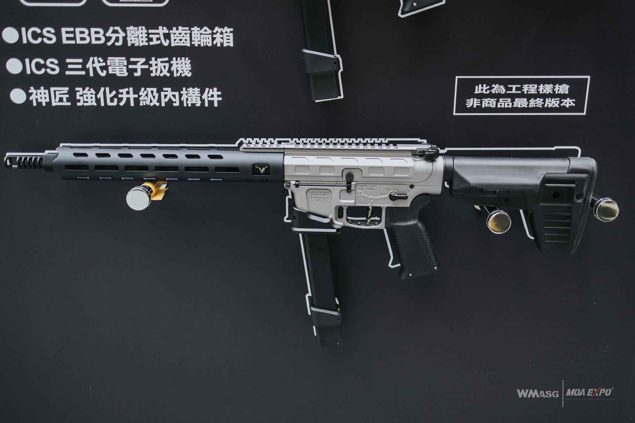 ICS Airsoft na tegoroczne targi IWA przygotował dość specjalny projekt. Podczas targów prezentowano nową, licencjonowaną replikę Taran Tactical TR-9 czyli karabinek AR-9 PCC w kalibrze 9 mm. O ile wiele produktów Taran Tactical Innovations można kojarzyć z serii filmów z Johnem Wickiem (granym przez Keanu Reeve’sa), tak model TTI TR-9 nie wystąpił jeszcze w tej serii. Sama platforma (zarówno replika jak i oryginał) wywodzi się z rodziny AR i posiada elementy takie jak obustronny selektor ognia, dźwignię przeładowania za szyną grzbietową, komorę spustową i nabojową oraz łoże (w tym przypadku w systemie MLOK).