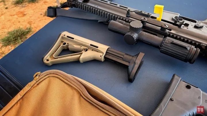 Other changes include full compatibility with AR-15 pistol grips and an expanded range of available stocks, ranging from a modernized classic stock (supplemented with QD points and a slightly revised cheek rest shape), through a fixed AR-15 buffer tube adapter, to the option of using the collapsible PDW stock from the SCAR SC rifle (aka the Baby SCAR). All of the listed components are backward compatible with previous generations.