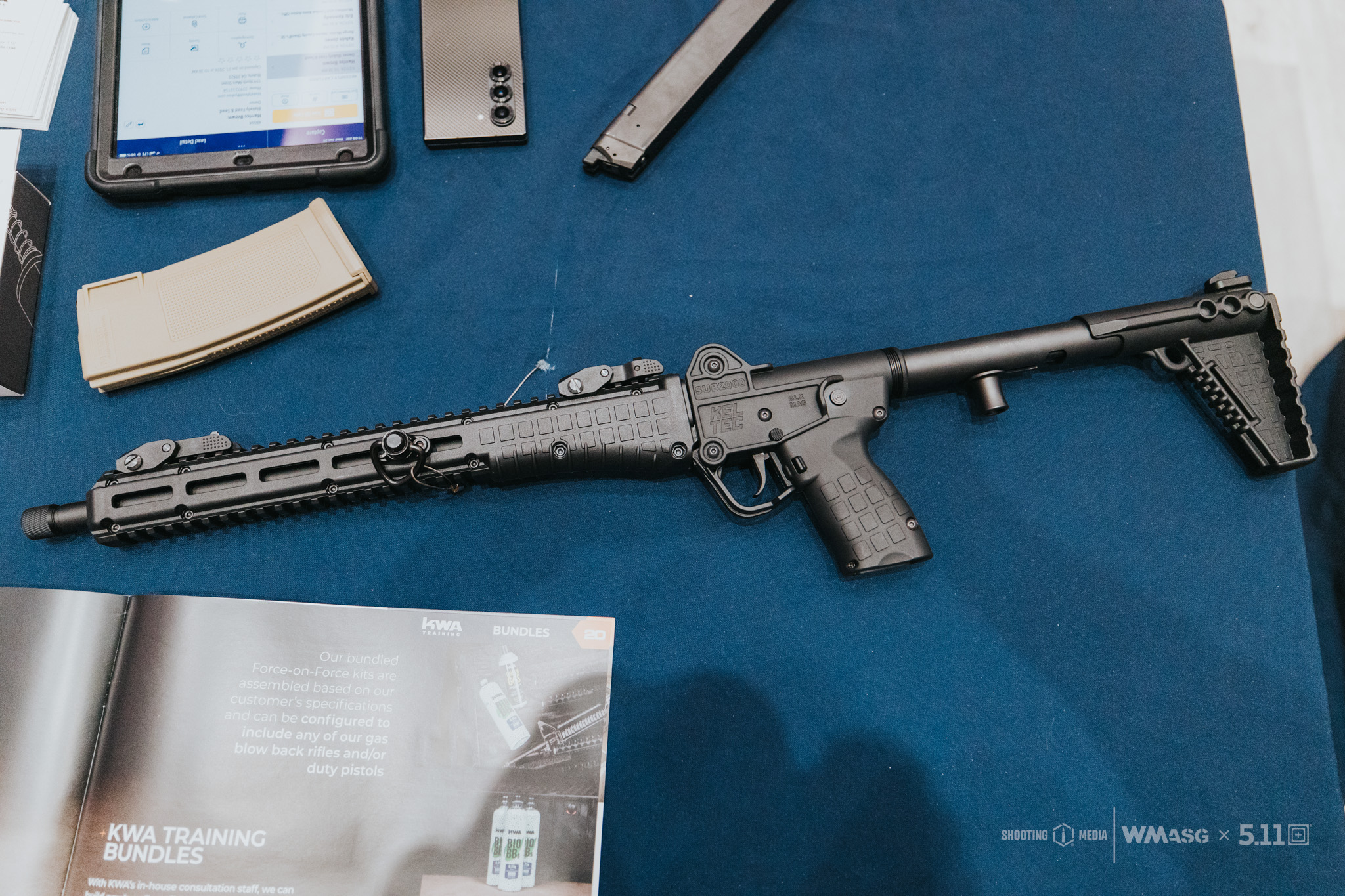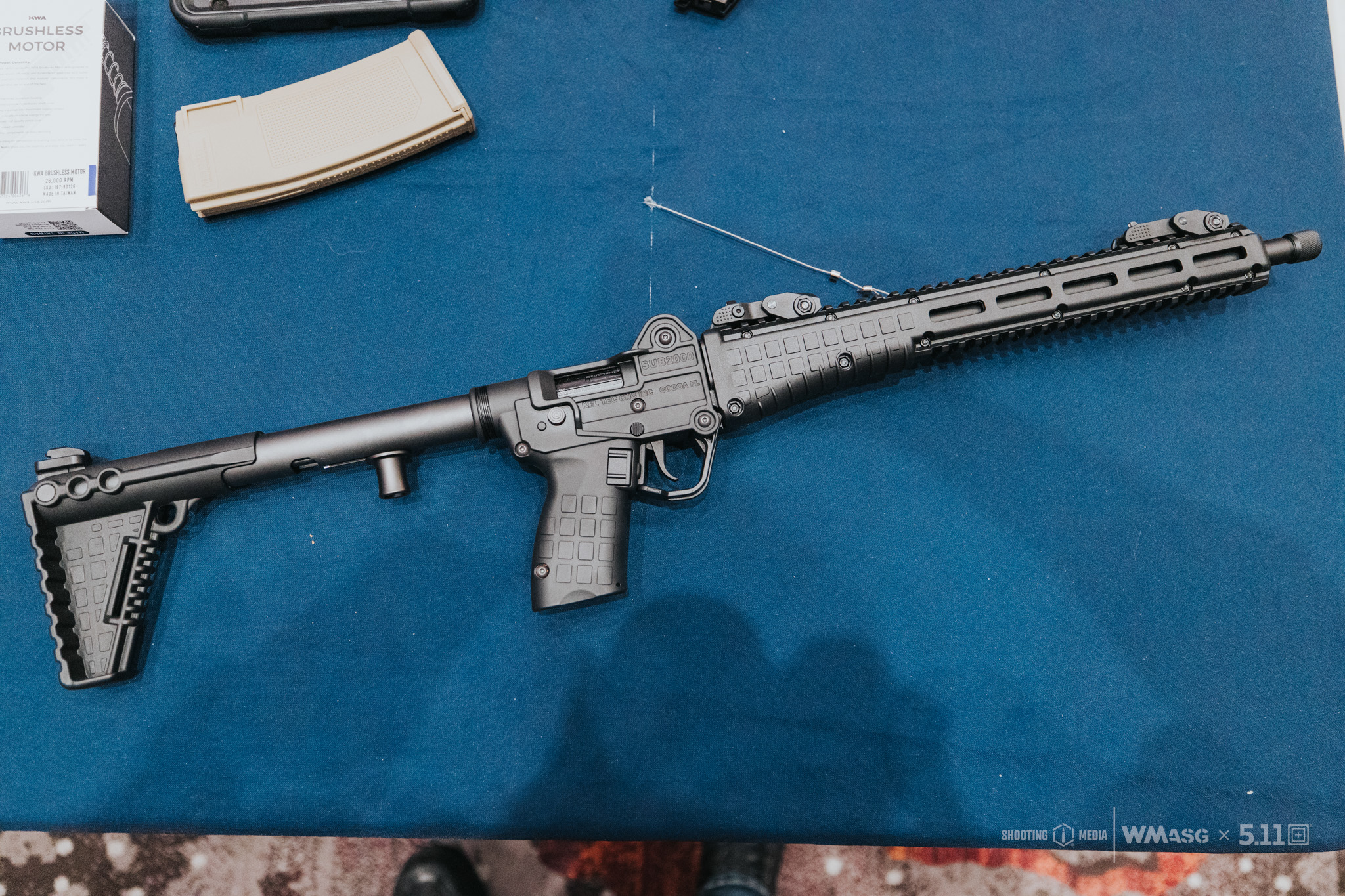 We współpracy z marką KelTec i Evike Manufacture Group (EMG) przygotowano prototyp repliki dość unikatowego PCC. Mowa oczywiście o konstrukcji pistoletu KelTec Sub 2000 w generacji 3 czyli dość ciekawej, składanej konstrukcji strzeleckiej zasilanej z magazynków pistoletowych. Na zaprezentowanym prototypie udało się odwzorować charakterystyczny mechanizm składania w pół wraz z obrotem łoża o 90 stopni (umożliwiając złożenie przy założonej optyce), w większości polimerową konstrukcję, łoże z systemem montażowym MLOK oraz przedłużoną szyną grzbietową. O ile w palnym pierwowzorze konstrukcja ta występuje w kilku wariantach zasilania różnymi kalibrami (9x19 mm, 5,7x28 mm, 10 mm Auto) jednak w przypadku repliki zdecydowano o odwzorowaniu wyłącznie wariantu 9x19 mm zasilanego z magazynków replik Glock ATP od KWA (zarówno warianty Green Gas jak i CO2).