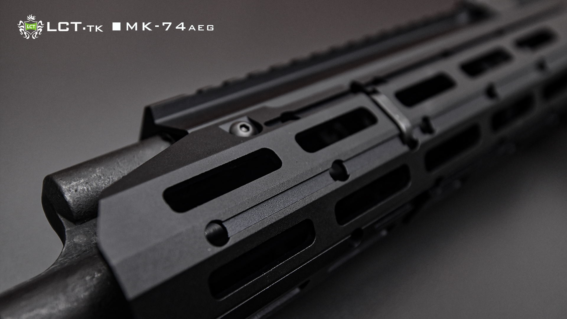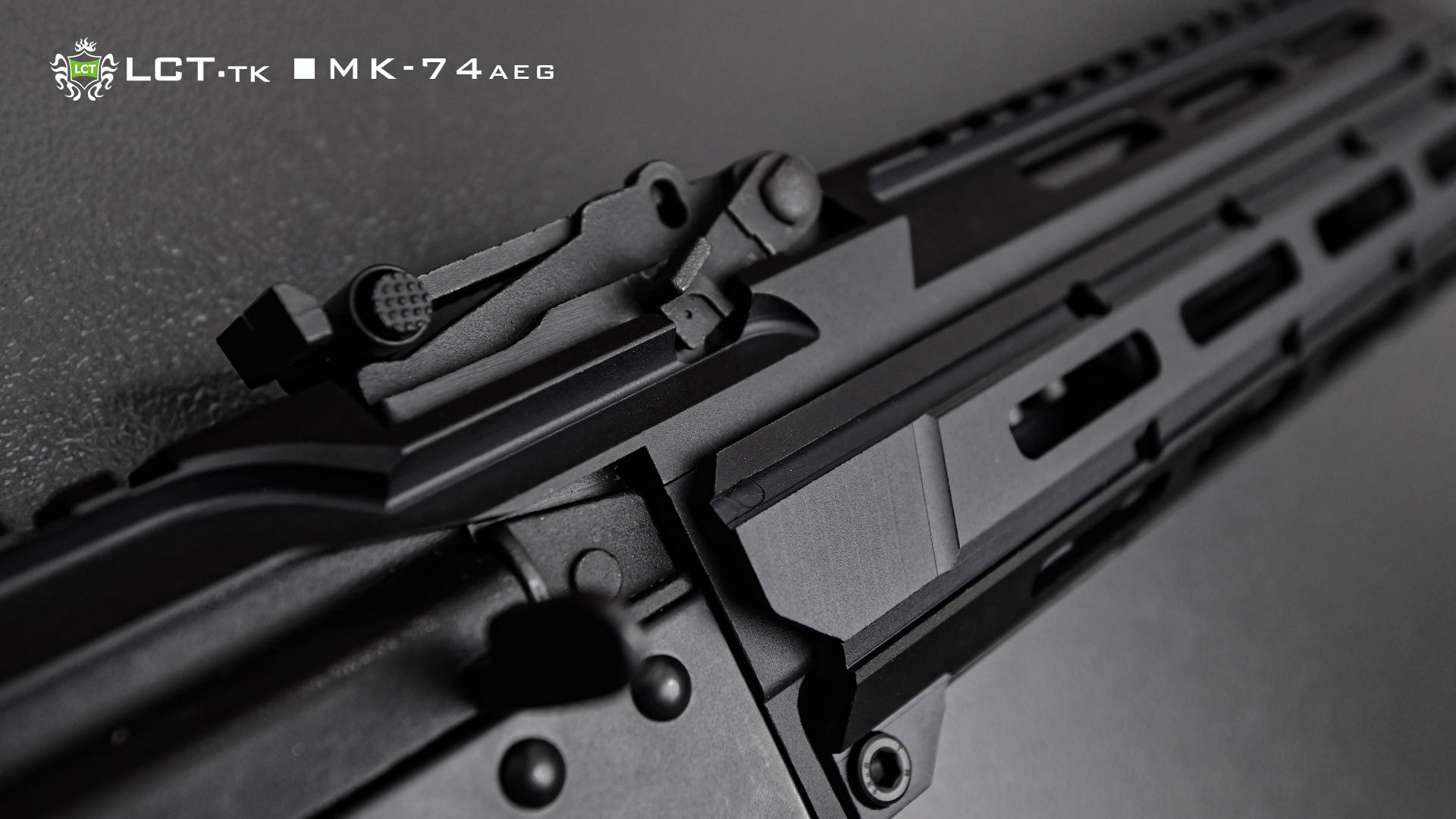 The new MK-74 replica is based on the AK-74 carbine platform. The changes mainly affect the external equipment, replacing classic components with a new M-LOK handguard system (featuring mounting surfaces on the bottom, sides, and angled sections), a gas tube cover with an integrated rail, a two-piece dust cover (allowing easier battery access without disturbing mounted optics), a pistol grip assembly with an integrated magazine release, and a fixed stock with adjustability.