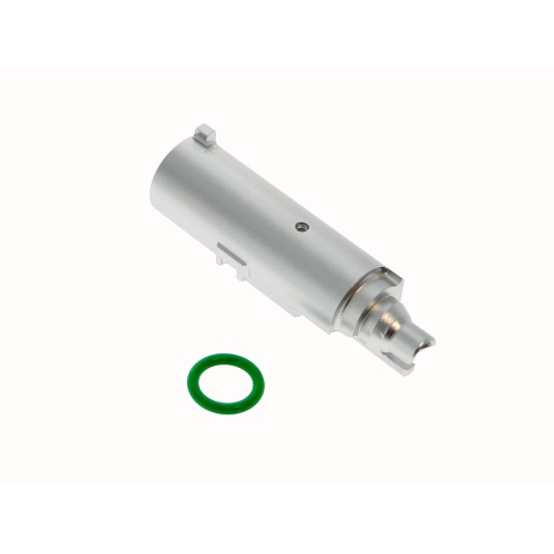 High Flow Nozzle Valve również wykonano z aluminium 7075. Dzięki odpowiedniemu wykonaniu, zmniejsza wycieki gazu do minimum i usprawnia jego przepływ. Do zestawu dołączane są 2 sprężynki, biała i czarna. Ta pierwsza zapewnia balans pomiędzy mocą blow-backa, a prędkością wylotową, a druga zwiększa ilość fps o około 10%.