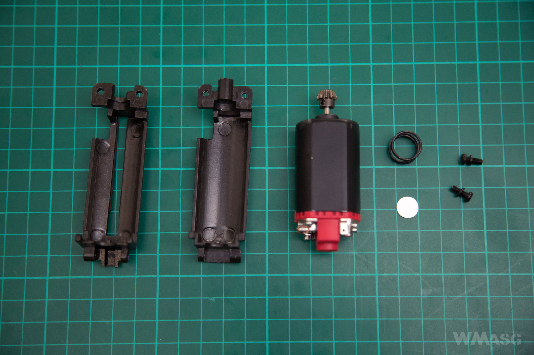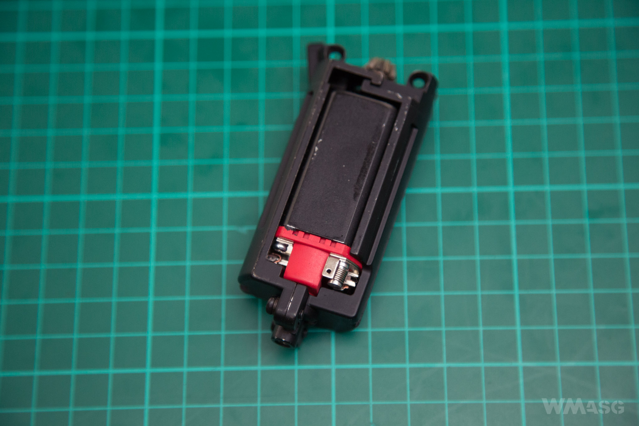 The short type motor used in the replica does not have very strong magnets. It is a pity considering the fact that the earlier models of Cyma has stock motors with neodymium magnets that worked really well with strong springs. The motor itself is in a metal housing and in order to get to it we first have to unscrew the housing.