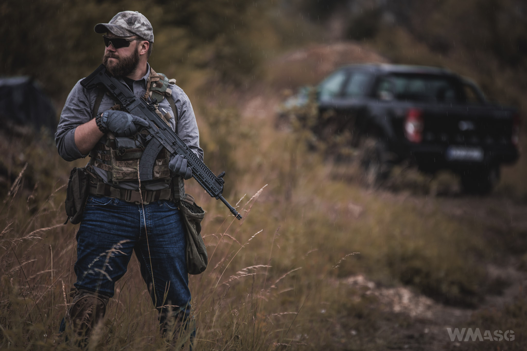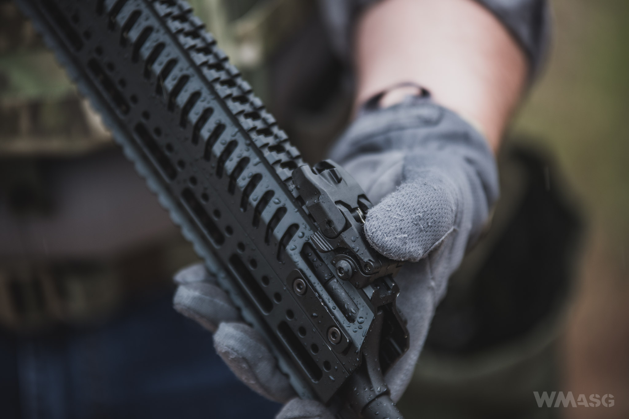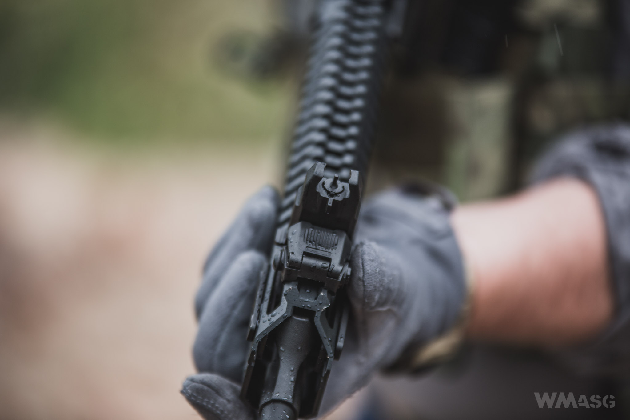 I can not say that the replica surprised me, rather proved that what has inside results in great performance. Target shooting already showed good grouping and repetitiveness of shots, and during an airsoft game I became convinced that the BBs were flying in a very stable, flat trajectory, went far and exactly to the place where I want to send them. Using the terminology of the world of firearms, I had the impression that we are dealing here with a great candidate for a DMR. Another issue is easy of use: the replica great to hold in one's hands, which add to the precision of shots. The linear arrangement of the barrel with the butt stock may not add to it as much as in the case of a real firearm, but after putting the rifle to the shoulder, I felt the ergonomics characteristic of the AR-15 standard. I am an enthusiast of light front grips, especially in ASG, and here the use of an aluminum barrel is, for me, a very positive trait. At out office, someone rightly pointed out that if a steel external barrel were to be used, the center of balance would move forward, making the carbine more realistic and, in theory, it would have a smaller "recoil" (if you can talk about that in an AEG at all).
