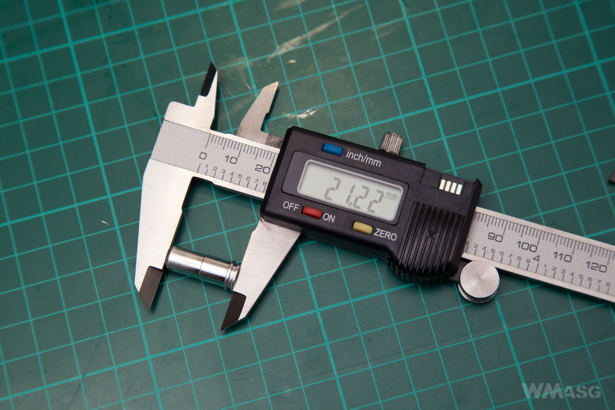 The replica uses a brass type 0 cylinder. It has a polymer piston and on it a polymer piston head with a full bearing. The standard cylinder head sealed using a single o-ring is also made of plastic. The nozzle is, however, made of aluminum and also has an o-ring. The reinforced (according to the information from the manufacturer) tappet plate is made of plastic and fulfills its function well. The spring guide is metal and has bearings. The spring used in the replica is the declared to be an M120, which allows you to achieve a muzzle velocity of 420 fps.