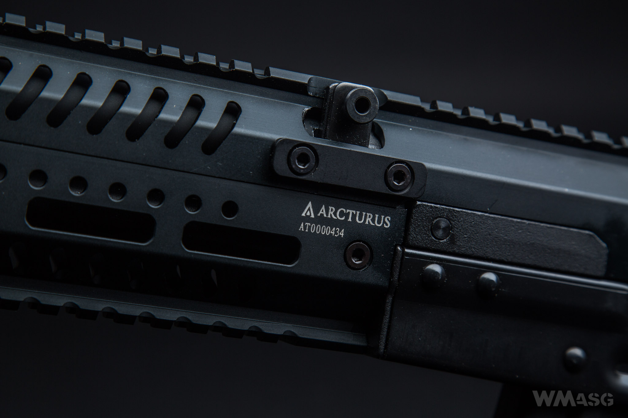 A modern front grip, transforming the replica into the next incarnation of the classic AK rifle, is made of aluminum in CNC technology. The manufacturer has used the M-lok mounting system for attaching equipment on the sides, as well as traditional Picatinny rails at the bottom of the grip and above the gas tube. The front grip has an engraved Arcturus logo and a serial number in the place where it connects with the receiver.