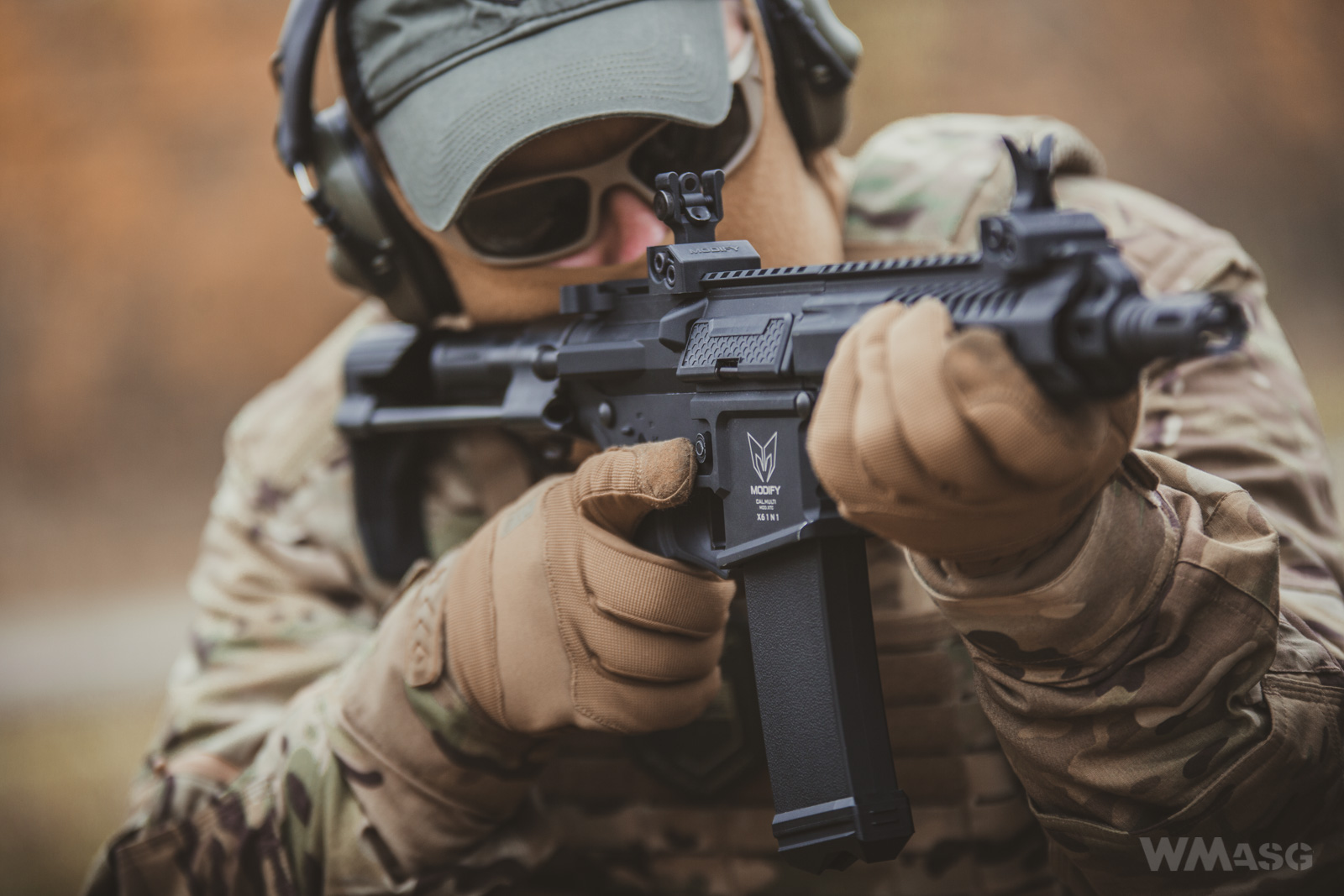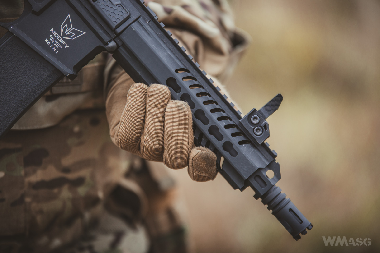 The XTC (eXtreme Tactical Carbine) family of carbines by Modify has just expanded by a third replica - the XTC PDW carbine. Models differ mainly in the length of the barrel and the front. The XTC PDW also has a characteristic stock modeled after the PDW type stock amounted on the HK416C with an extended buttplate.