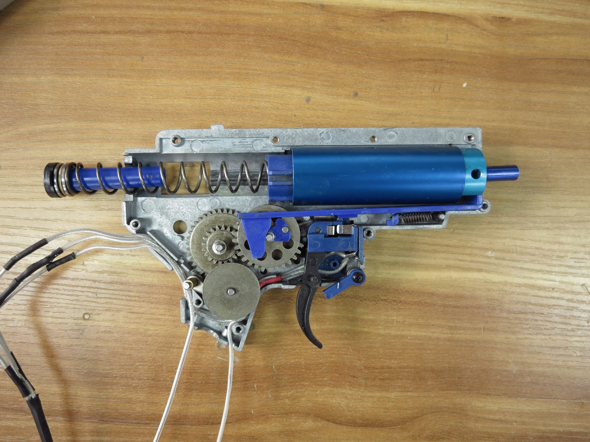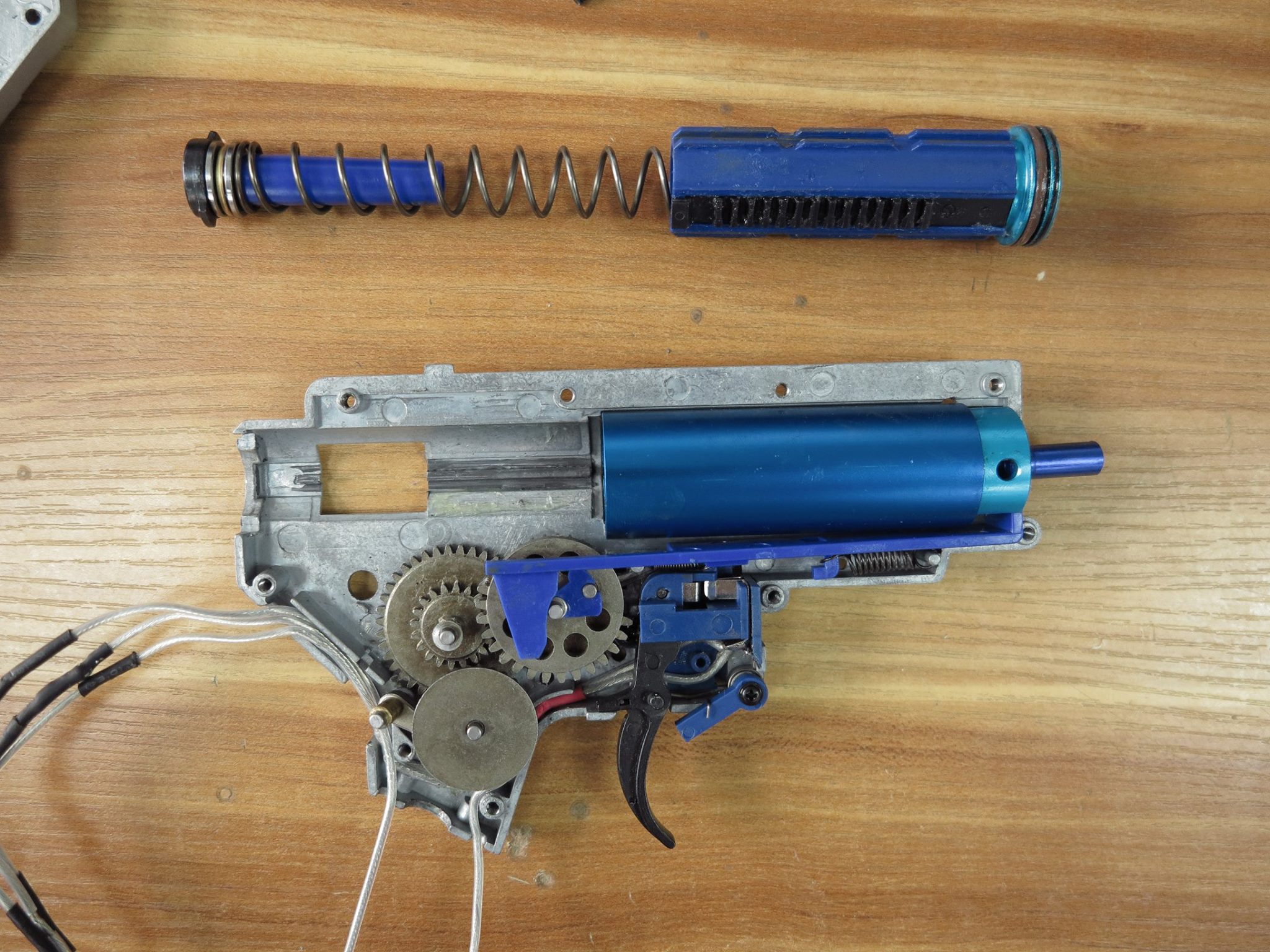 Zauważyć w nim można prowadnicę sprężyny z systemem szybkiej jej wymiany i łożyskowaniem. Z pewnością to ostatnie się przyda przez wzgląd na zastosowany tam tłok. Posiada on pełną stalową listwę, wyposażoną w 14 zębów. Klasyfikuje go to jako model high speedowy. Ten swą konstrukcją przywodzi on na myśl produkt firmy SHS, również w kolorze niebieskim i o podobnym, jeśli nie identycznym wykończeniu całości.