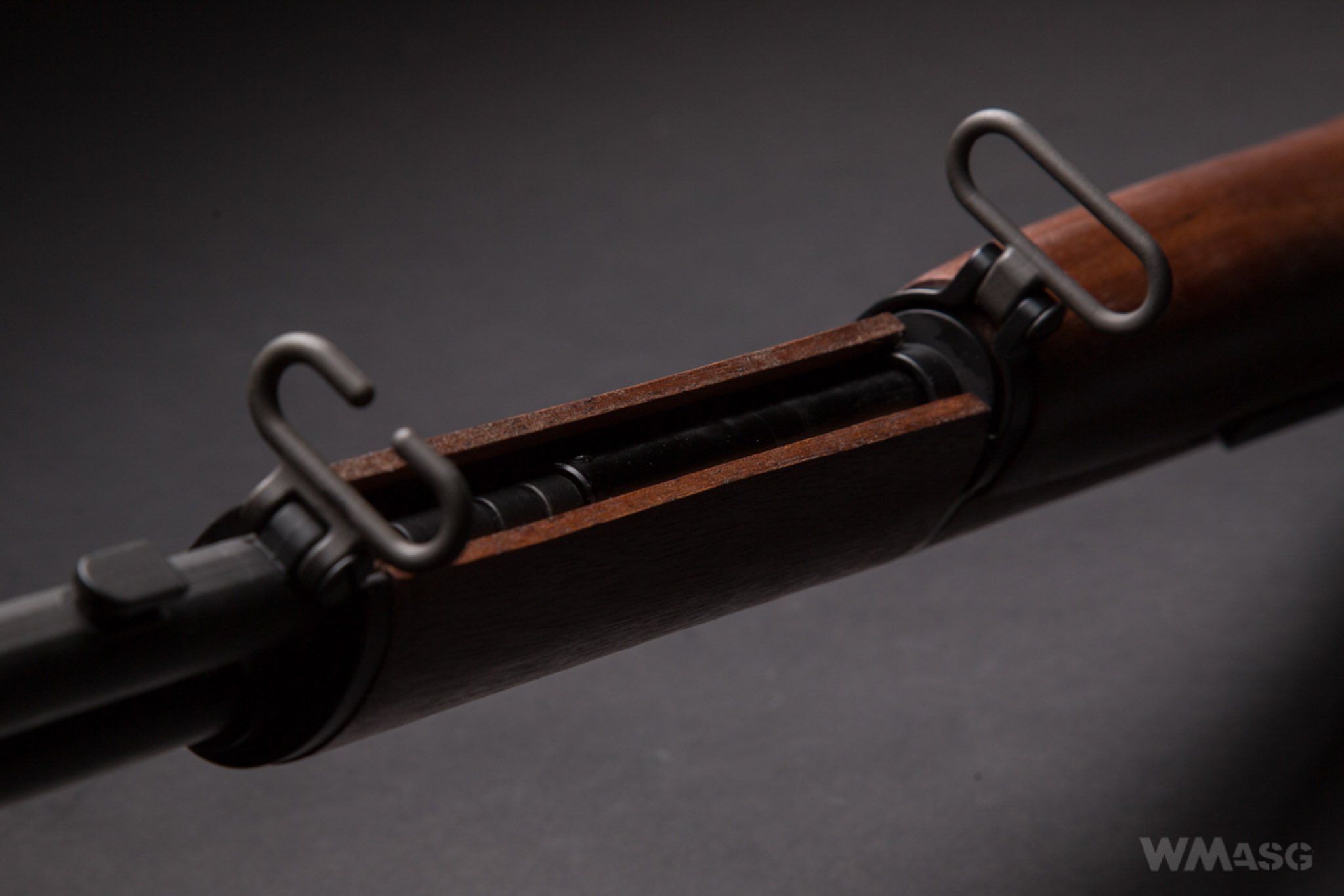 ICS is proud of the fact that the wooden parts of each replica are made of single piece of wood using CNC machines. Though I can not verify it, I have my doubts about this statement because of the difference in the wood shade between the back of the barrel cover and other parts. I would expect that parts made from a single piece of wood will have the same color tone. But ... I have only this rifle at my disposal and cannot compare it with other units. In addition, I do not know if under the conditions of wartime production someone made sue that the wooden parts of each rifle were made of a single piece of wood. More important to me is the fact that the wooden parts fit perfectly and that they are not varnished but oiled. This is good news for people who want to add a little character to the replica. The wood itself is not overly or grossly soft. Yes, it can be scratched but it requires some force.
