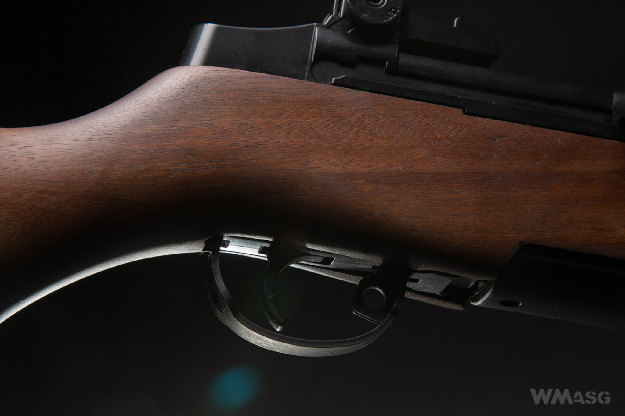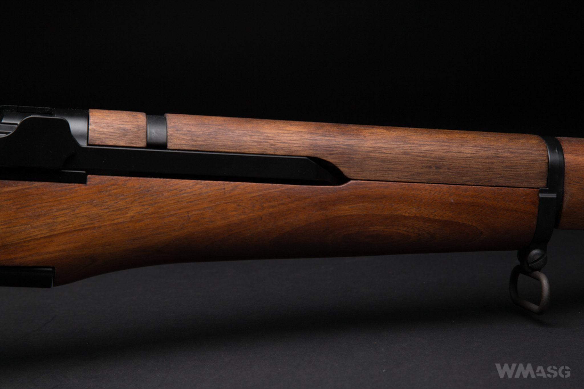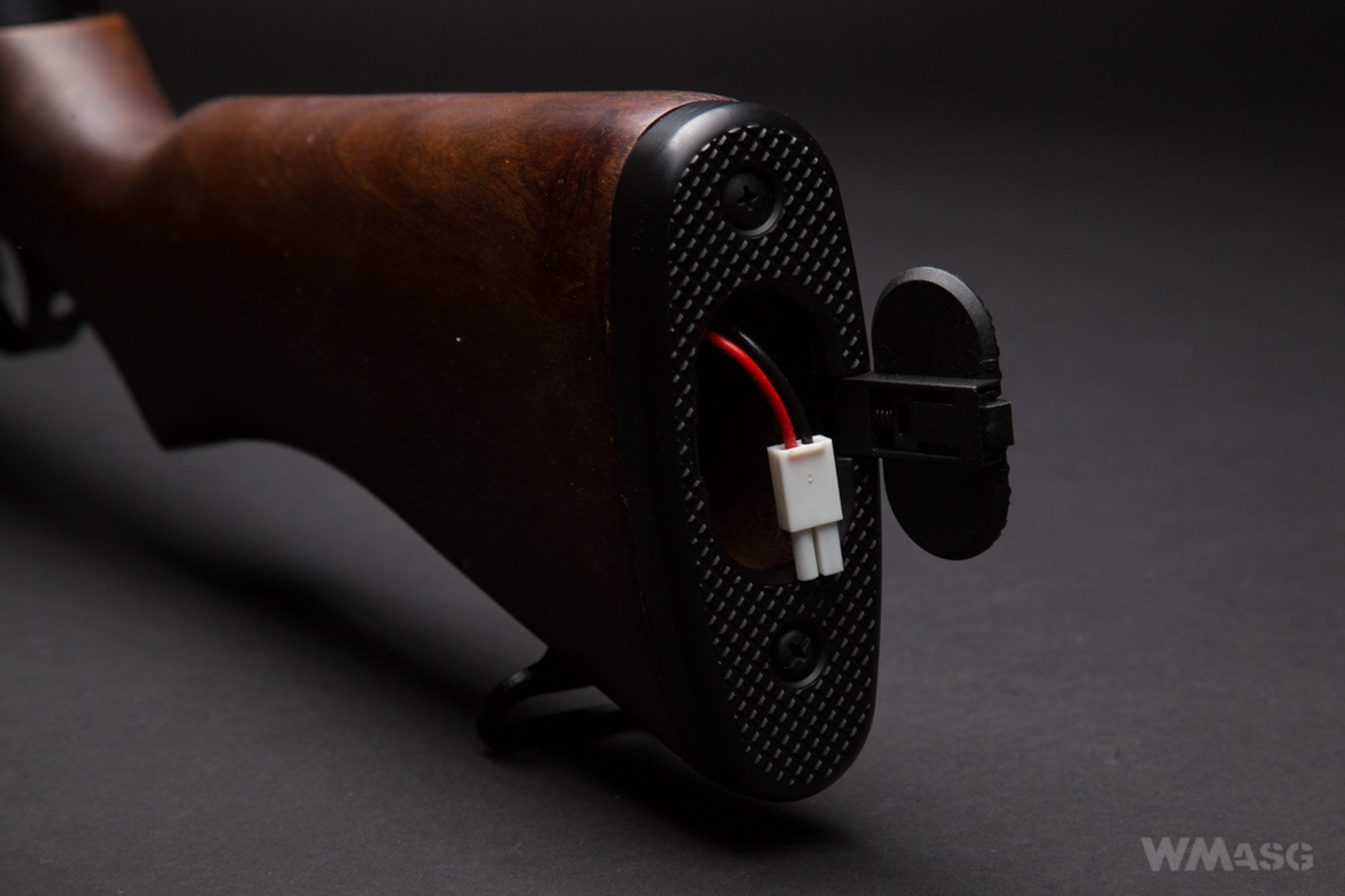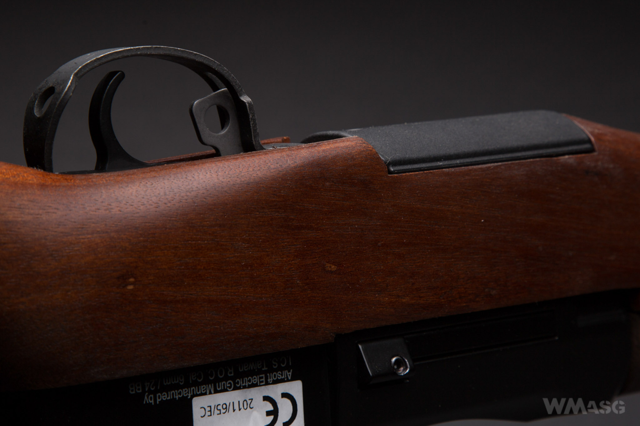 I could not to compare the ICS replica with a real firearm, so I cannot say how faithful it is, ot not. A man from the 2nd Ranger reenactment group, which uses a Garand replica made by a Spanish manufacturer, Denix, on a daily basis, said that the ICS replica has a slightly wider grip of the stock. Any possible scaling of this part is very likely - this is where the motor is located. The width of this part in the ICS rifle measured from the top is 42 mm, and measured from the side over 48 mm.