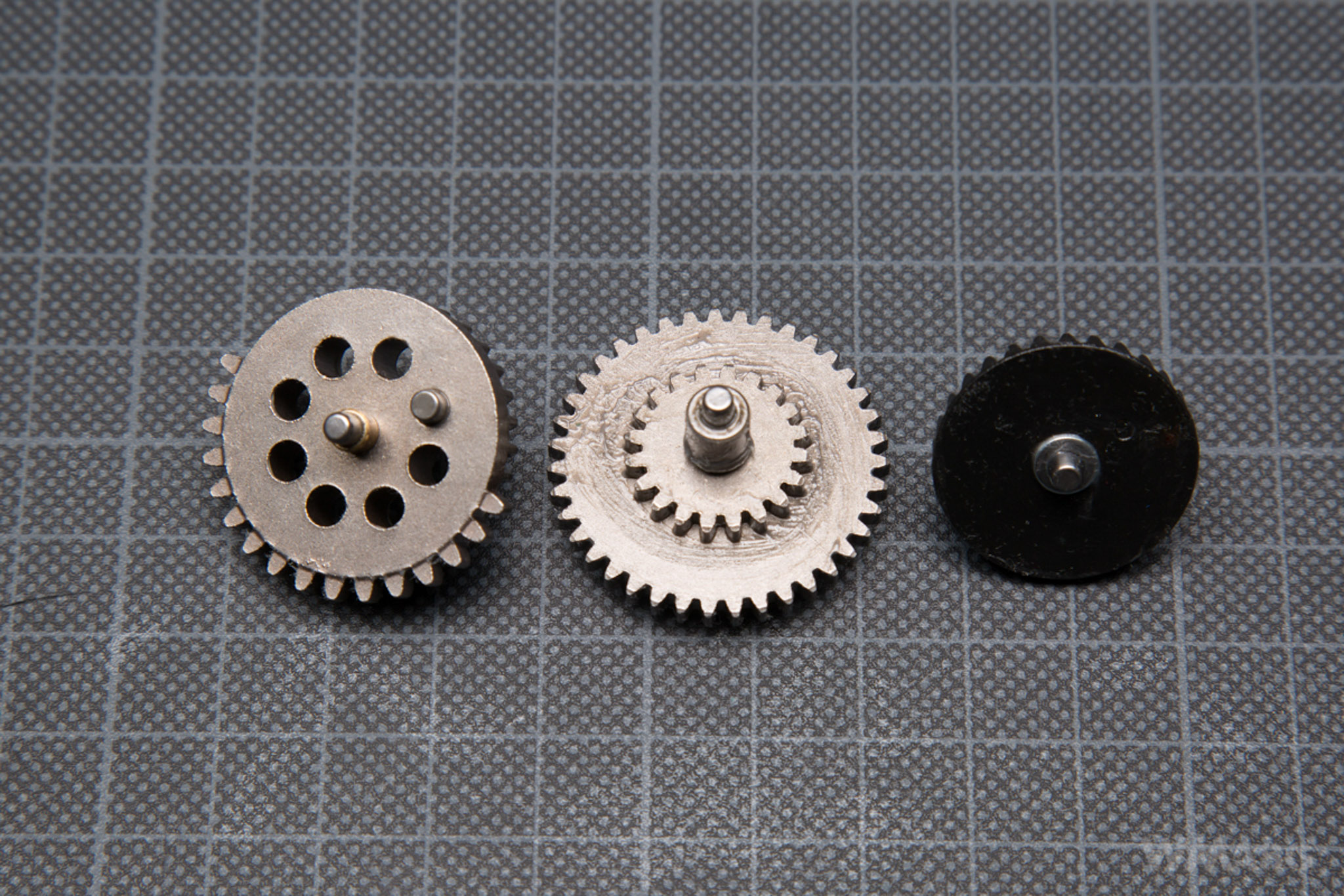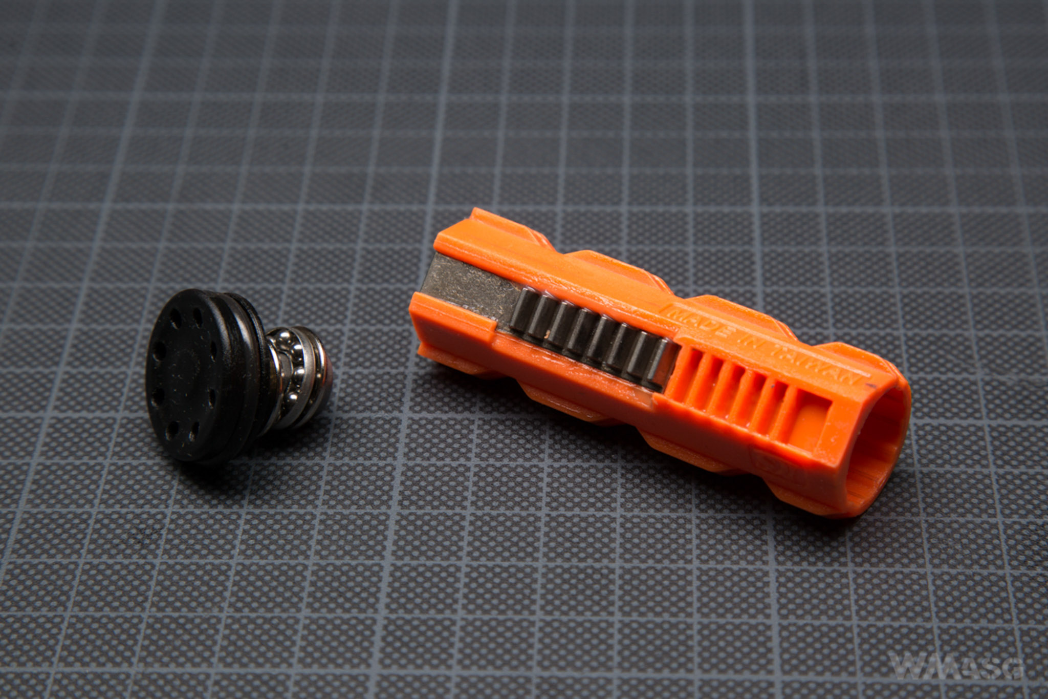 A piston is different from the ones used in ICS blowback replicas. It is made very precisely from a sturdy looking material. It has eight steel teeth.