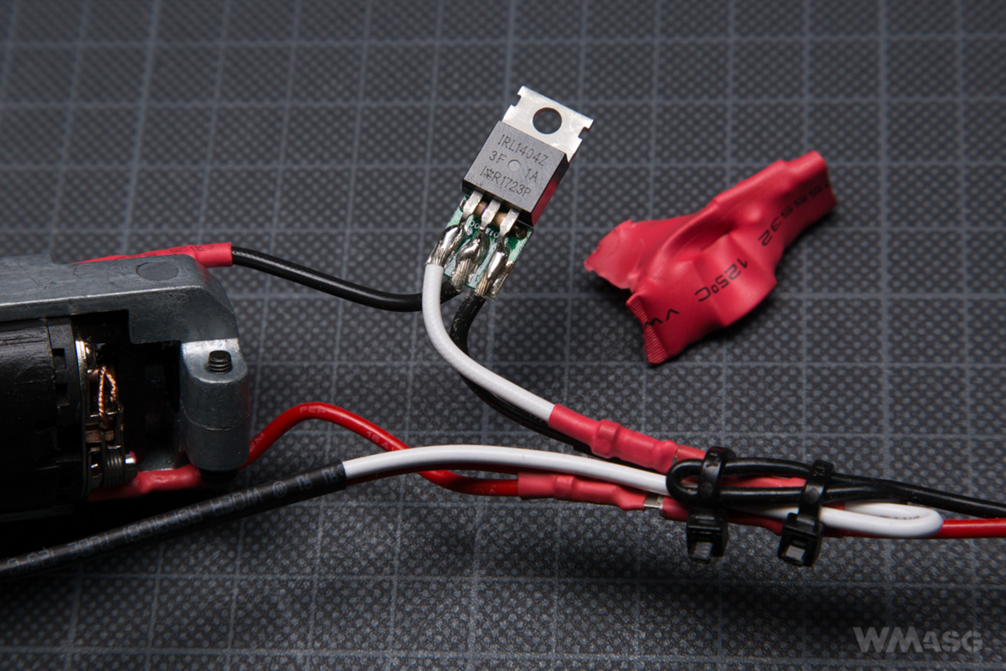 The trogger switch is non-standard. The cables are rigid and encased in hard insulation. Contrary to the information and photos from the advertising leaflet, these are not 16AWG cables. The ones used in the replica do not have any markings. A simple MOSFET is built into the system.
