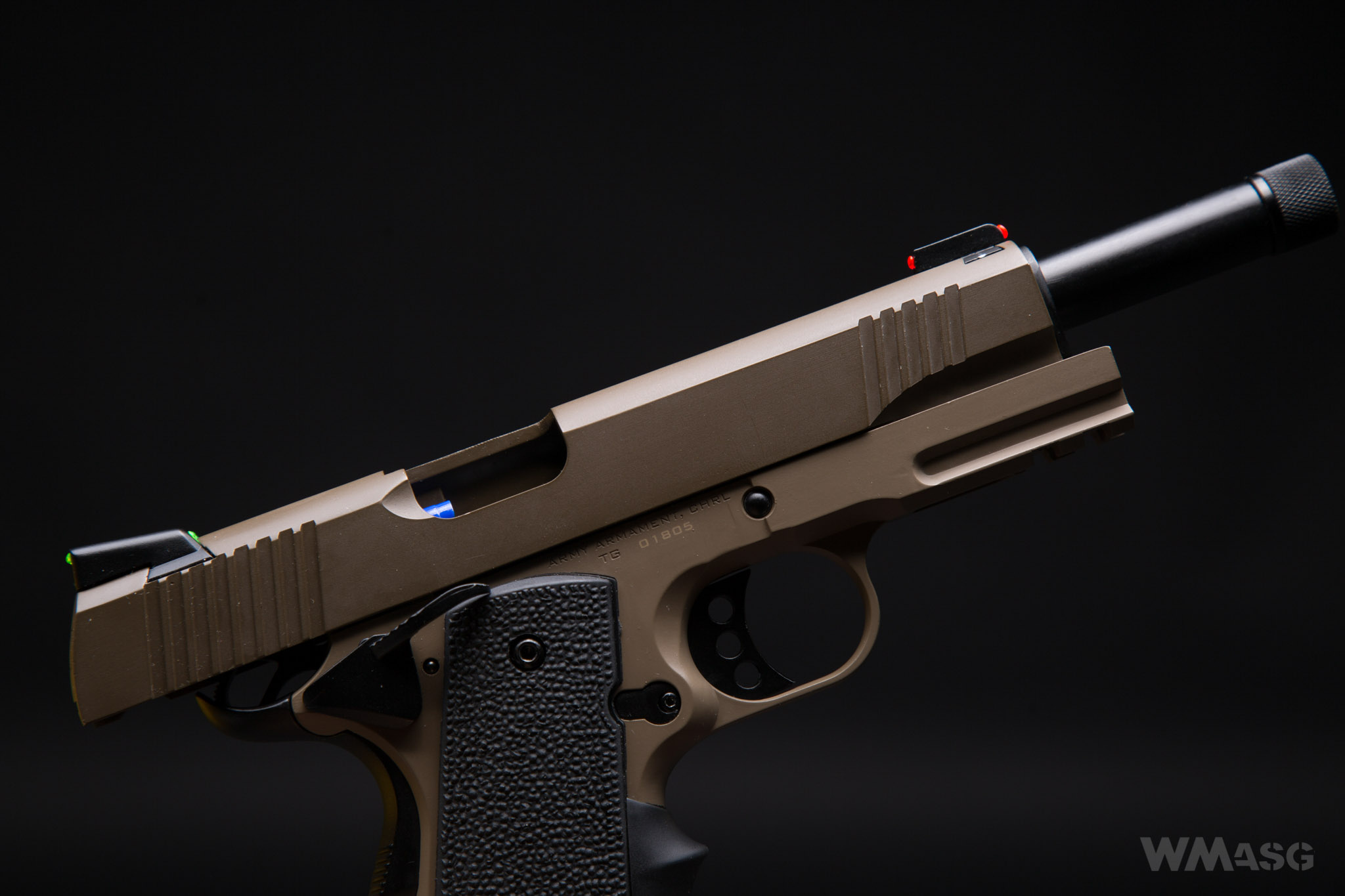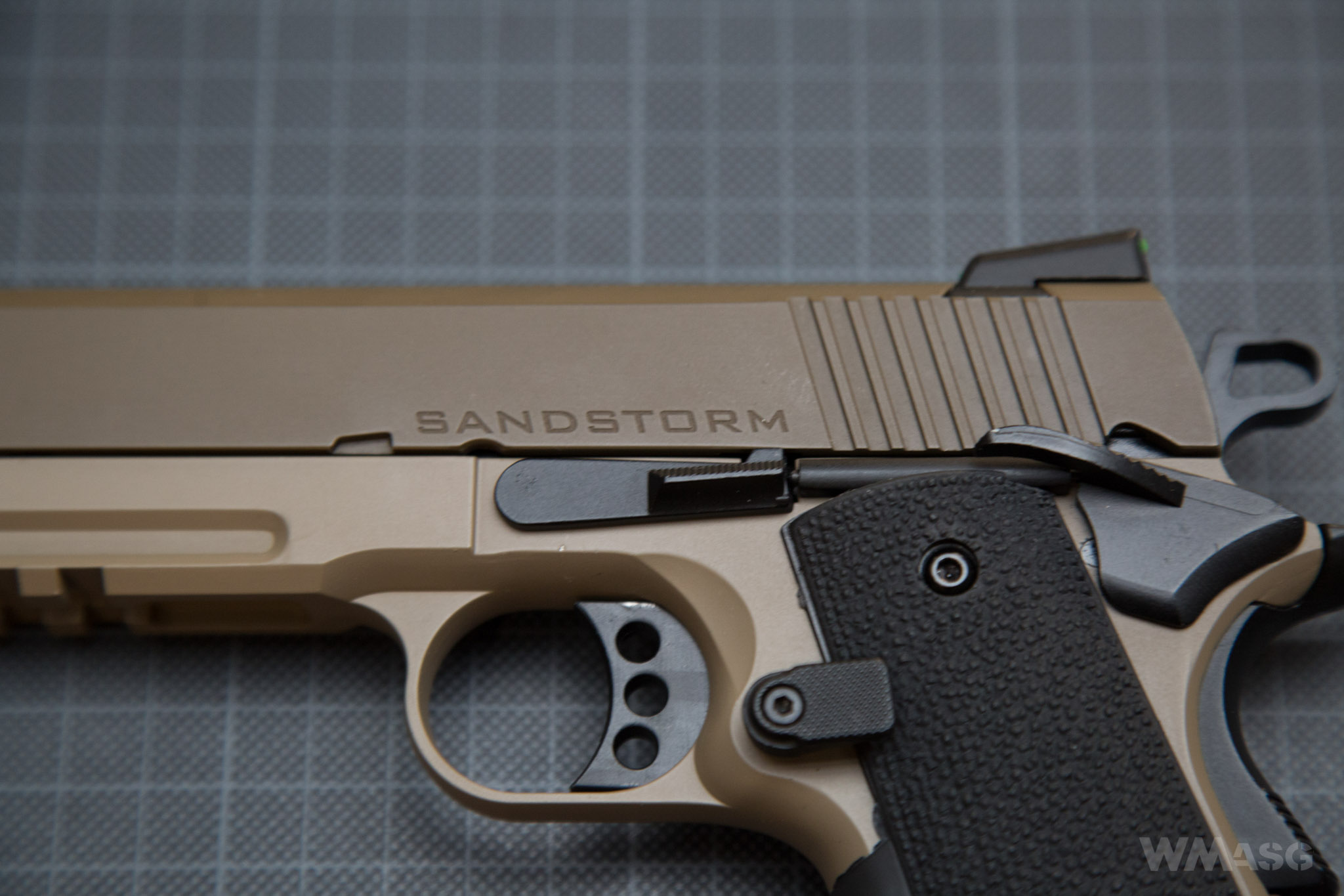 The manufacturer decided to release three color versions: the reviewed two-color Sandstorm version in dark earth and brown. The two-color Darkstorm (in black and gray) and the uniformly black Nightstorm. In many online sources, in which I was looking through for additional information, the pistols are described under the common name R32 1911 MEU with an appropriate note (Sandstorm, Darkstorm, Nightstorm). At the same sites , the information is repeated that the R32 series is a long-awaited replica. Well ... I suppose so.