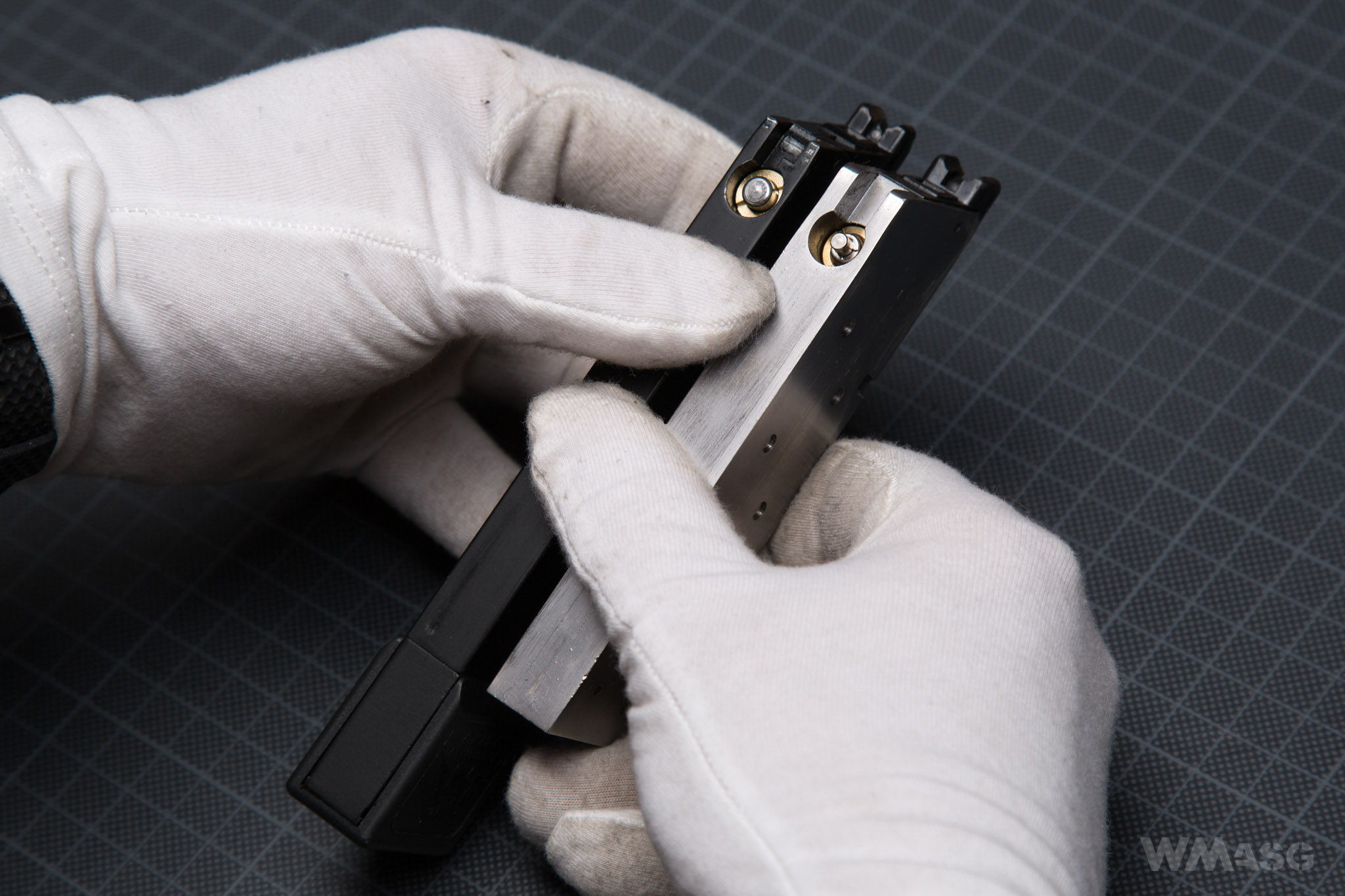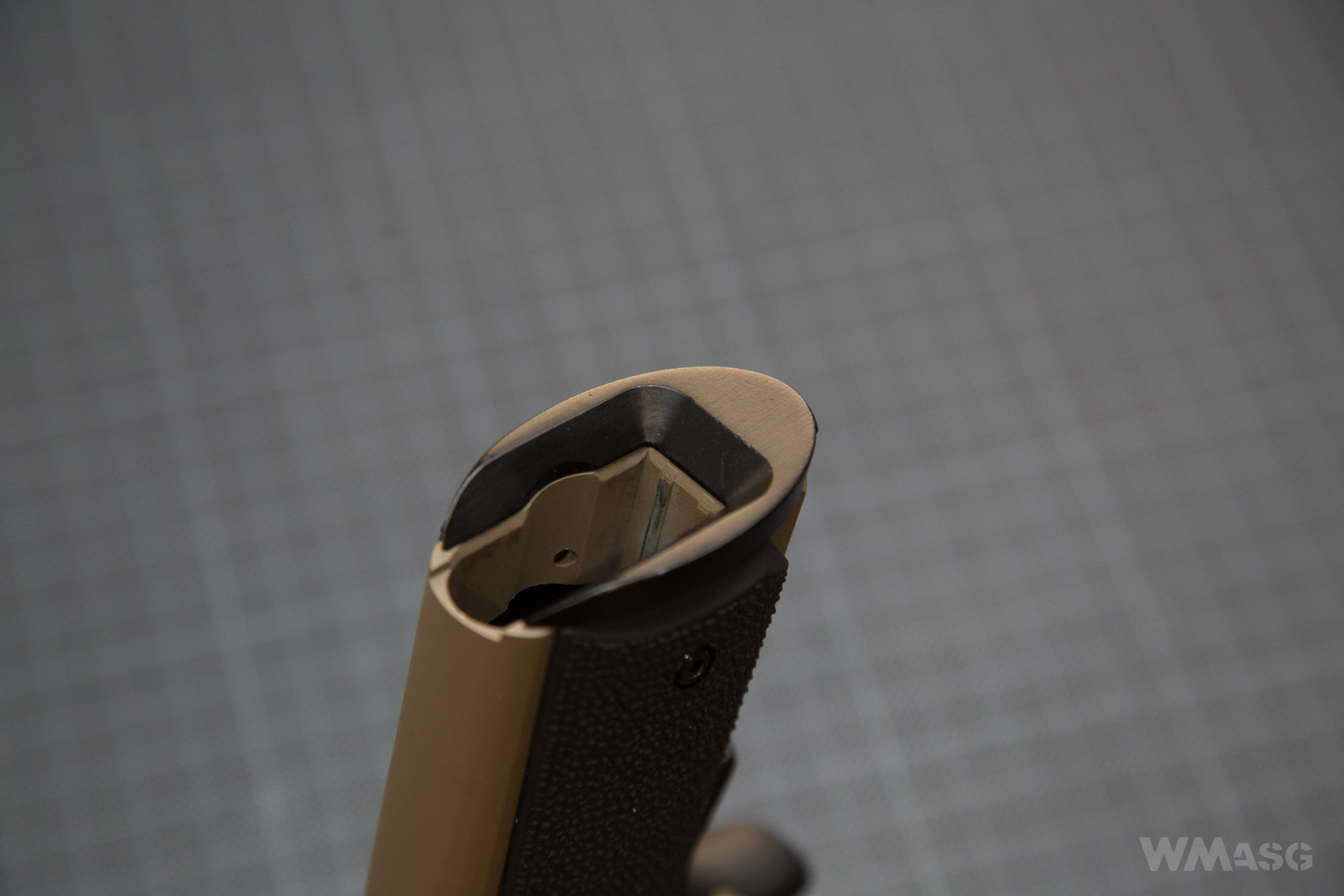 On the Internet you can find information about the compatibility of the replica with magazines dedicated to the Colta 1911 / MEU by Tokyo Marui. I had the opportunity to check it with one magazine. They do not fit. The KJW magazine from MEU by this manufacturer does not fit the R32. More details on this are given later in this text.