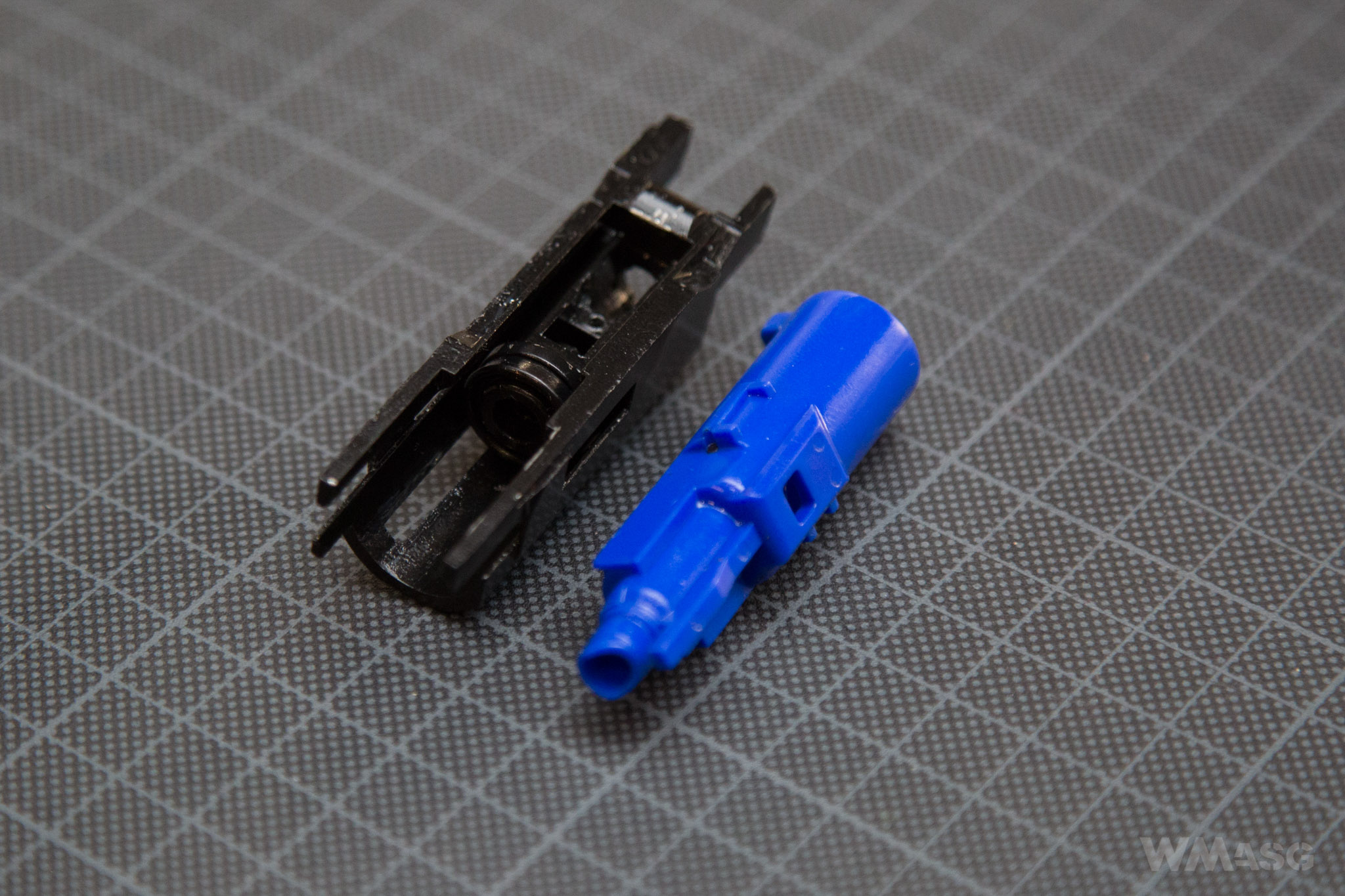 According to the manufacturer', the Hop-Up bucking is made out of reinforced silicone compound, which is to provide resistance to wear and low temperatures. Also, the nozzle, that can cooperate with green gas and CO2 magazines, is also reinforced: