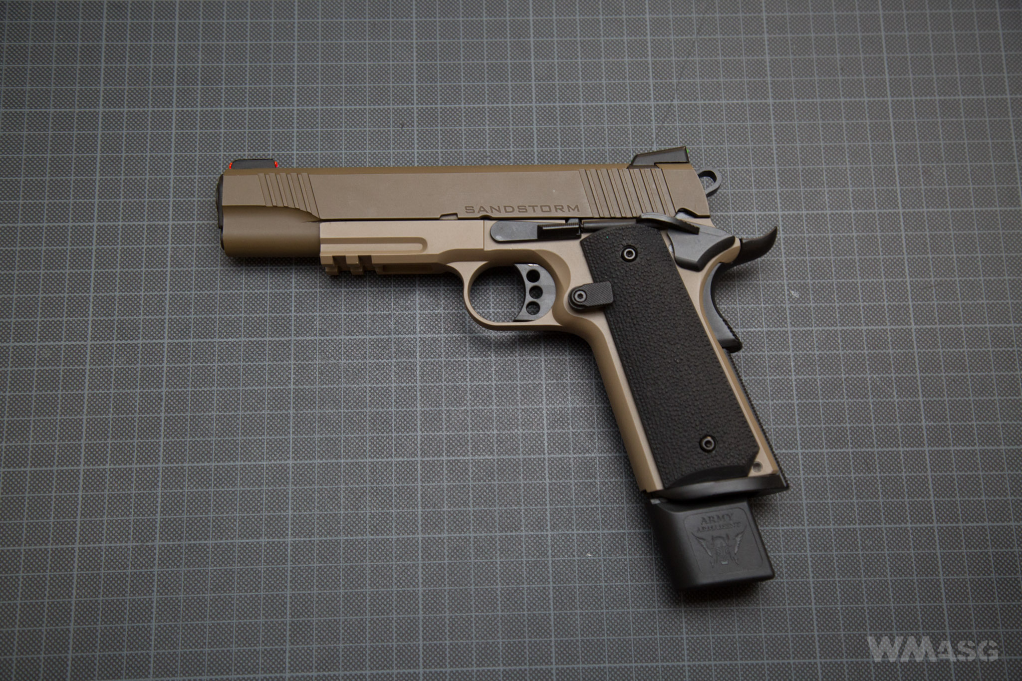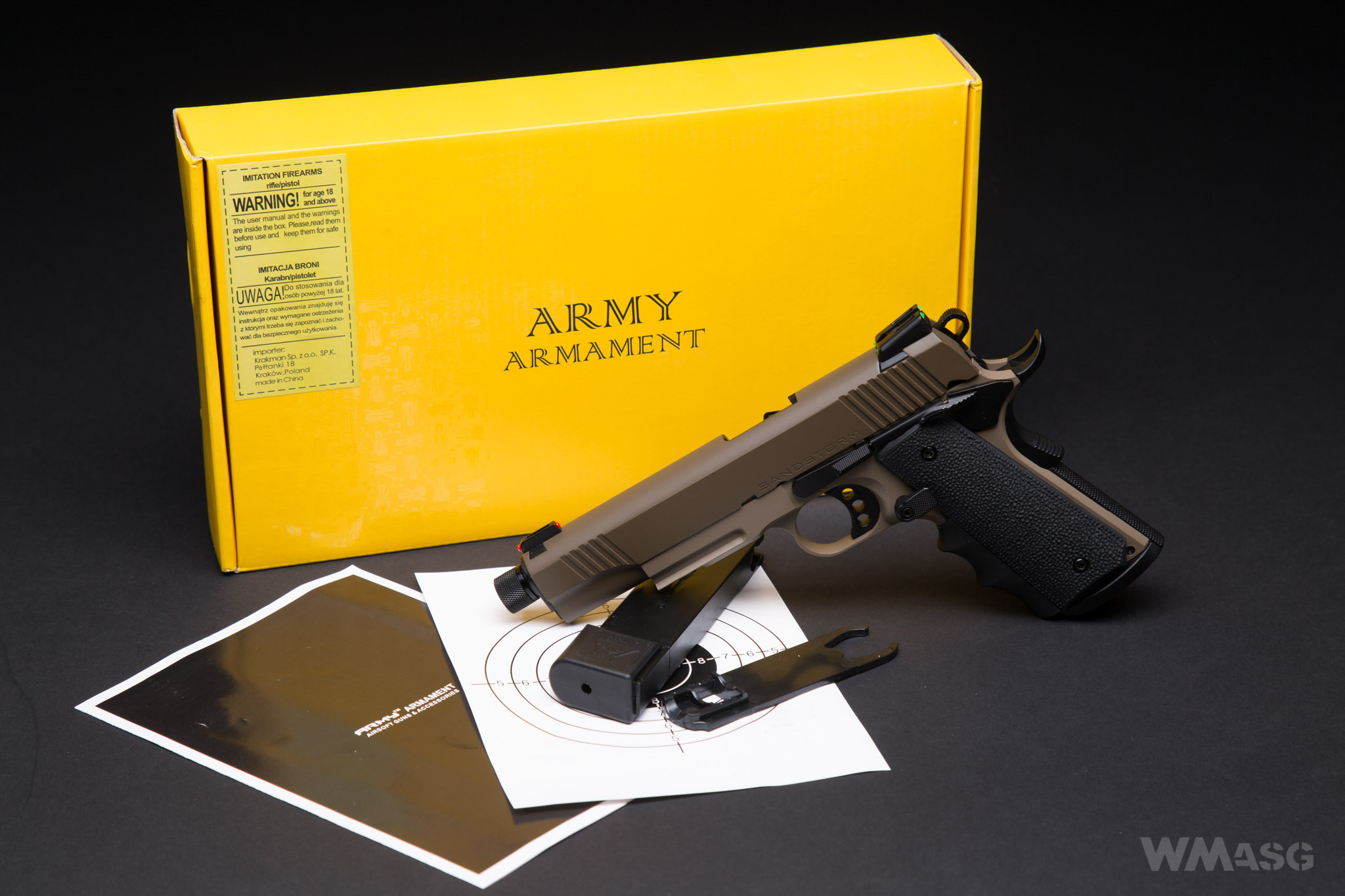 We got a new item from Army Armament - the R32 Sandstorm pistol, a replica of the Colt 1911 in a refreshed tactical specification. Of course, the replica is equipped with a blowback system.