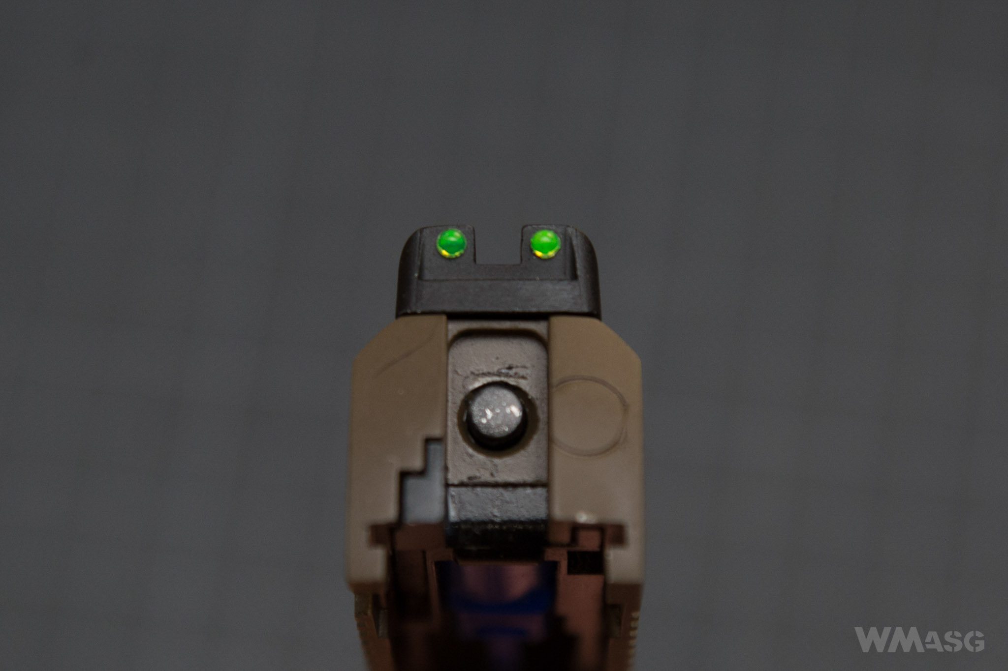 The R32 has, as several other Army Armament replicas do, "optical fiber" sights.