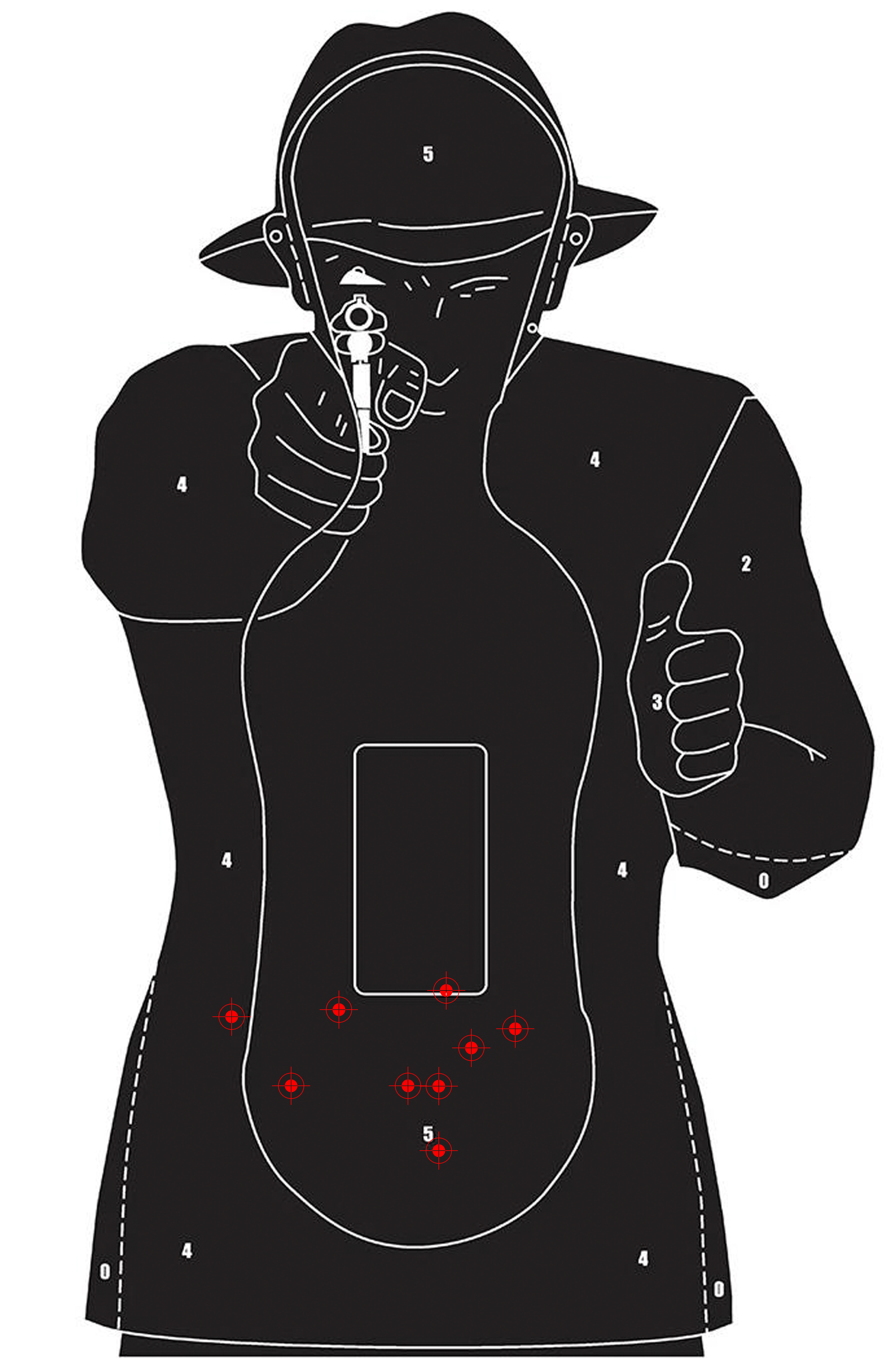 This inconspicuous little gun fared quite well our test, but unfortunately it had a tendency to fire to the right and by such a large margin that not even one BB hit the centre of the target . Horizontal spread was at 14 cm, and vertical spread at 15 cm.