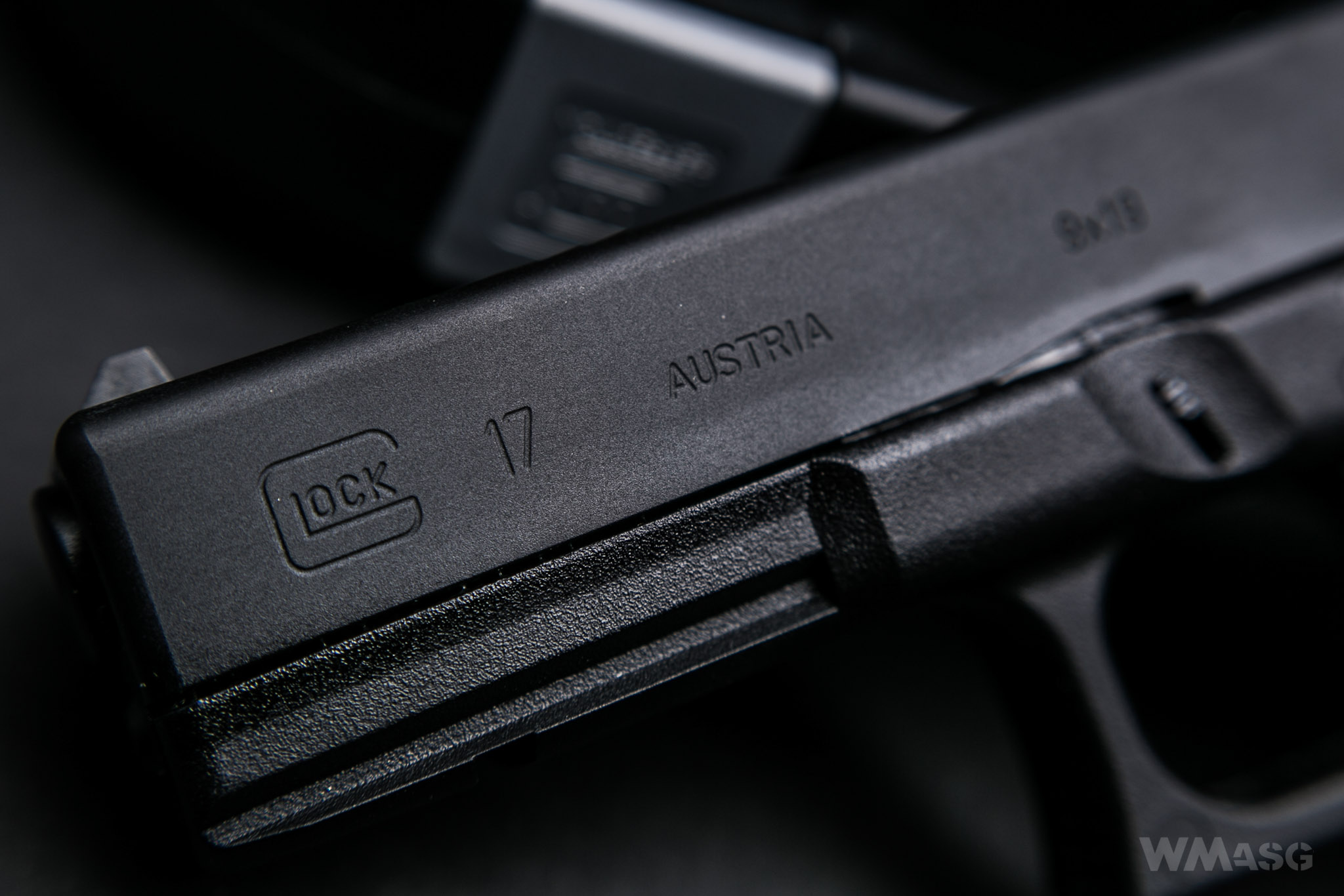 All replicas of the gun from Umarex have full, licensed Glock markings. We will find almost all the elements present in the real firearm: the company's logo on the slide together with the version designation and the standard AUSTRIA note, the markings on the ejection port, corresponding to the ones on the slide and the Glock logo on the pistol grip. An addition, thanks to which we can distinguish the replica from the firearm, is the marking Officially Licensed Product of Glock which replaces the original MADE IN AUSTRIA. It is situated above the pistol grip.
