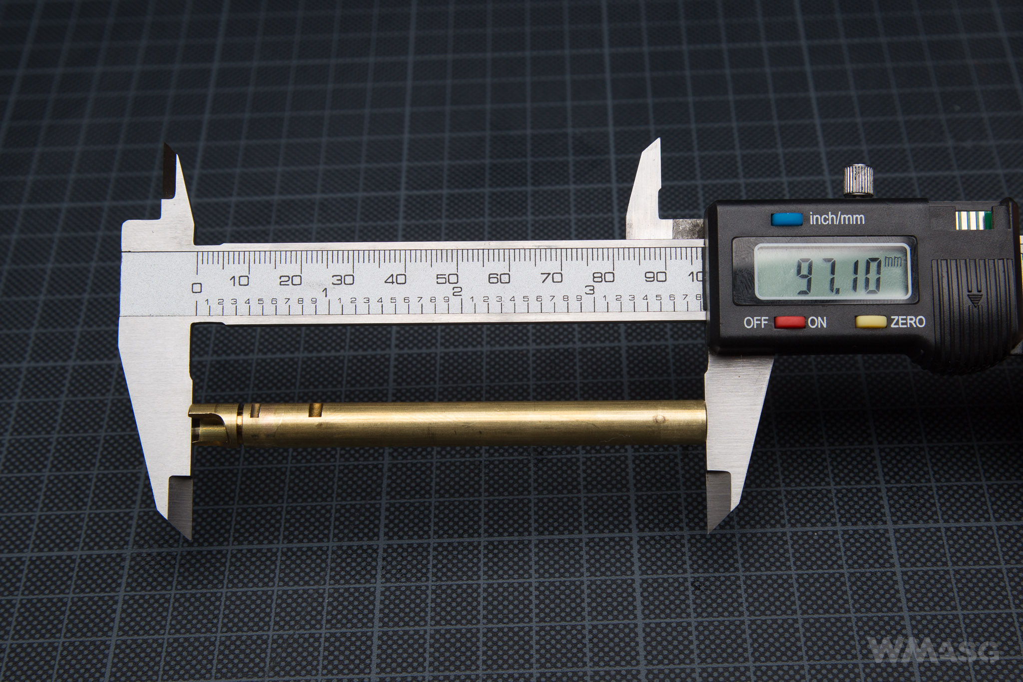 The brass inner barrel is 971 mm long and is beveled at the end.