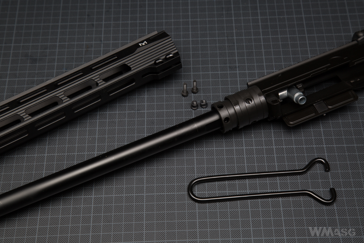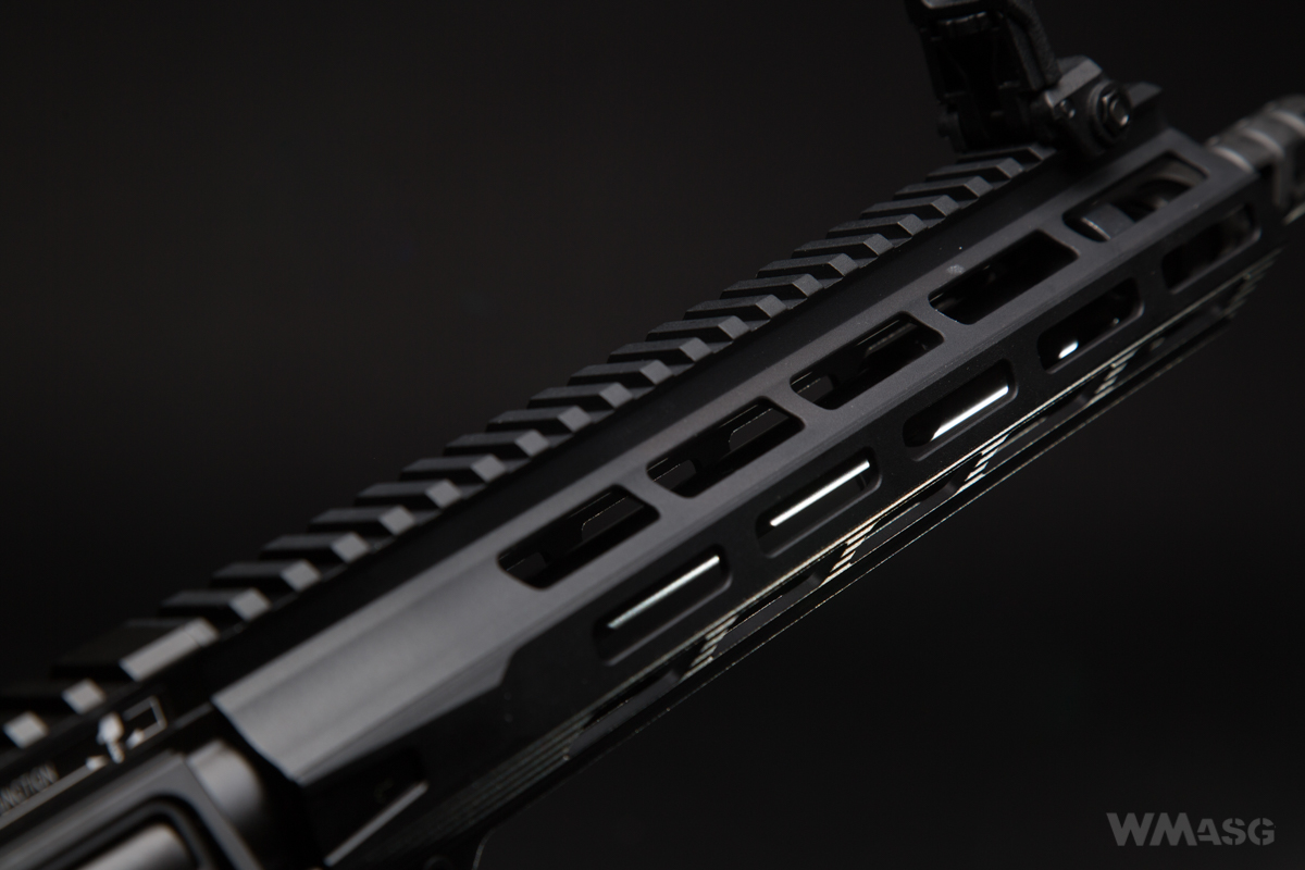 The MMRs are equipped with the M-LOK system licensed by Magpul. The fronts are made using CNC machining are very aesthetic. They do not have any sharp edges or failures. They are mounted very securely. To disassemble them you need a 3 mm Allen key. To pull the front towards the barrel exit just loosen the 2 screws at the bottom. Then, using the key attached to the carbine, unscrew the stabilizing ring and, possibly with the same key, the ring fixing the outer barrel.