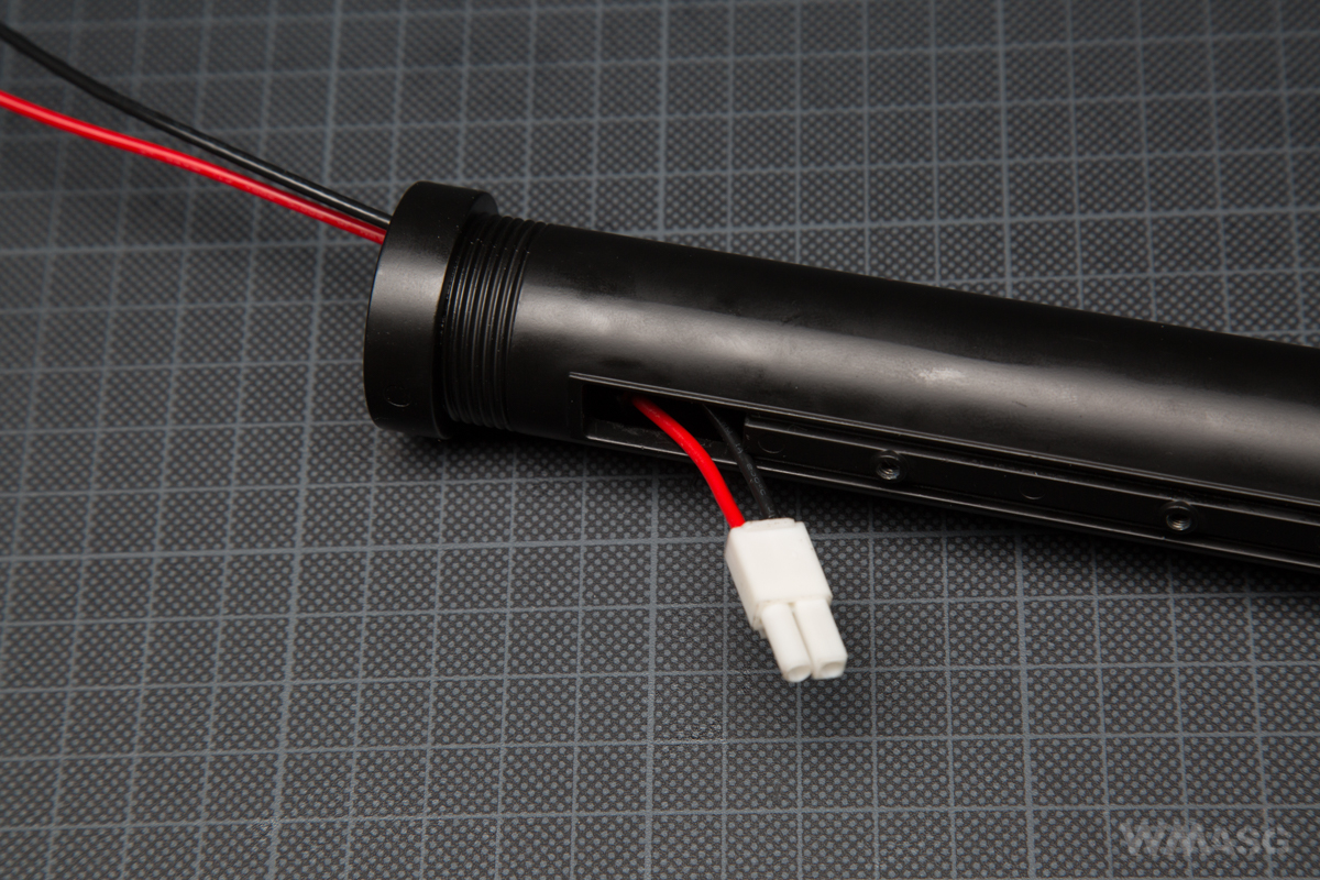 The wires are rigid, encased in hard insulation. The electrical installation equipped with a simple MOSFET. Its installation method simplified and there are no separate control wires. It also has a mini type fuse. The battery plug is a mini Tamiya type.