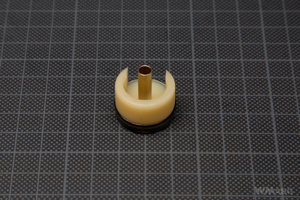 In addition to the piston and spring guide, the internal parts are made in an unwritten standard. The piston has eight steel teeth and a characteristic hook on top used to drive the electric blowback system.