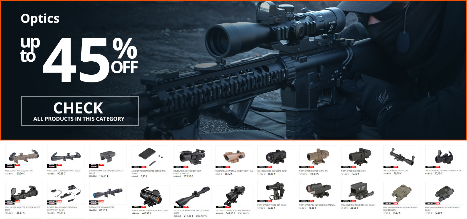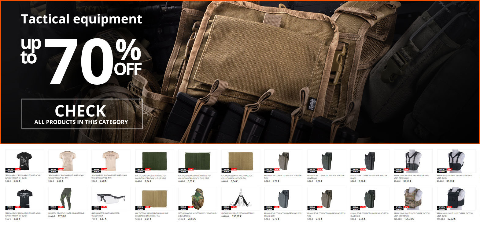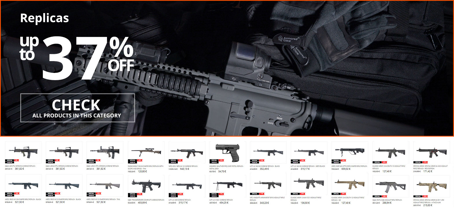 Impossibly low prices, unique products on sale, talking wallets and products disappearing in the blink of an eye are the most common symptoms of Black Madness. The hottest promotion of this year which has just took over Gunfire! Do not be afraid, however, we know how to deal with it! All you need to do is visit our website and search our offer by discounts or categories. Thanks to this, you can easily and conveniently discover the best deals! Among them you will find replicas discounted up to 37%, tactical equipment up to 70% and parts cheaper up to 65%. Together with giant discounts, we have prepared products from the most popular manufacturers. The special offer includes products from such brands as G&G, Tokyo Marui, Specna Arms, Valken, G&P, King Arms, Novritsch, Modify and Cyma. Do not wait until Friday and see the discounts for which your wallets will be grateful!