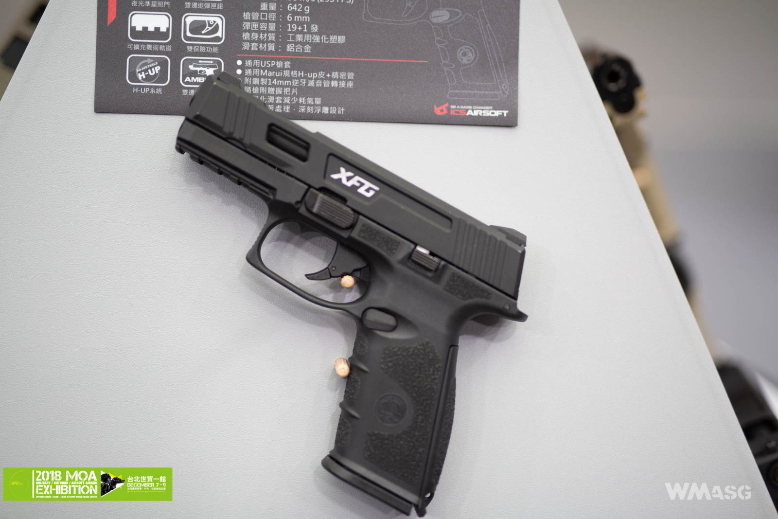 This year, handguns are very prominent at the ICS stand. Probably because the manufacturer has relatively recently entered this segment of the market and has been previously known for the making AEG replicas, parts and accessories for them. Currently ICS makes two GBB replicas - pistols designated BLE-XFG and BLE-XAE. Both are presented at the fair, but they are accompanied by several new products announced for next year.