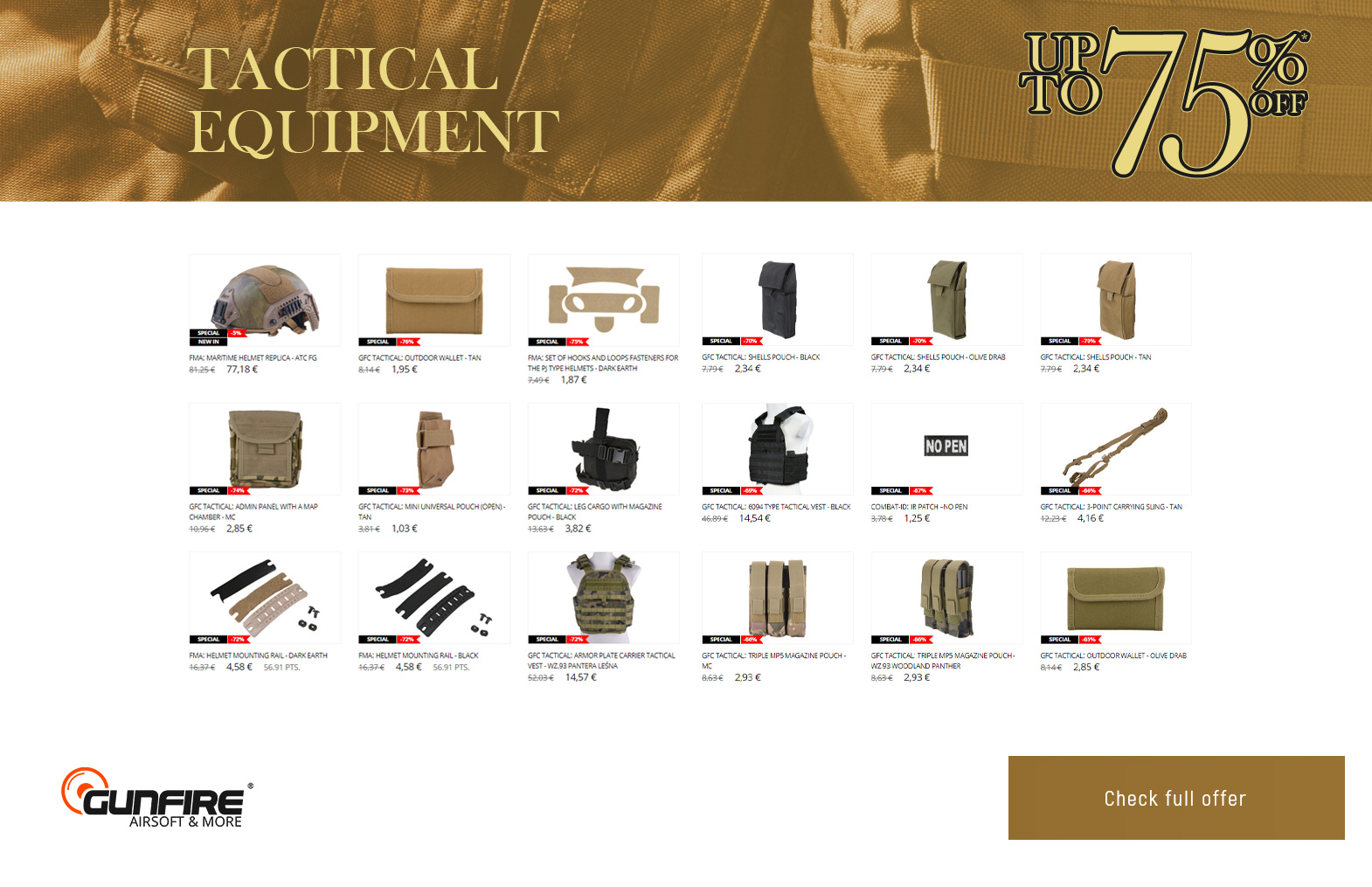 We celebrate the ninth consecutive victory in the Popular Airsoft portal Airsoft Players' Choice Awards. It would not be possible without your support and votes. Therefore, we want to thank you for that with the sale worthy of the Best Airsoft Retailer for Europe. In the Winners Sale offer, you will find over 3500 products up to 75% OFF. Among them are replicas by EMG, BOLT Airsoft, Specna Arms and KJ Works; Guarder, PPS Airsoft and Tornado parts as well as tactical equipment by Primal Gear, Uvex and FMA. Not enough? We’ve just added some new discounted products to our Drop Zone so don’t wait and check the best prices in Gunfire!