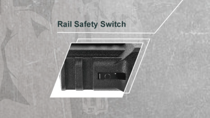 - three safety features: in the grip, in the trigger and in the rail at the front of the frame;
