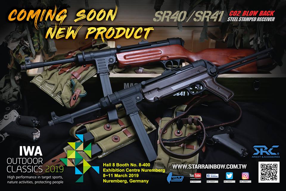 The replicas of the German MP40 (SR-40) and MP41 (SR-41) submachine guns are to be powered by CO2 and their receivers are to be made of stamped steel. Judging from the promotional poster, the manufacturer will present its new replicas at the upcoming IWA 2019. If this happens, the wmasg.pl team will certainly inform you about it!