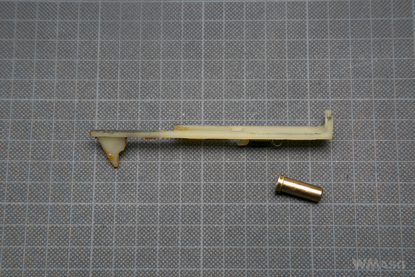 I wewnętrzna, robocza część skrzydełka selektora (na zdjęciu brakuje stalowej kulki ustalającej pozycję - mam, nie zepsułem, nie zgubiłem).