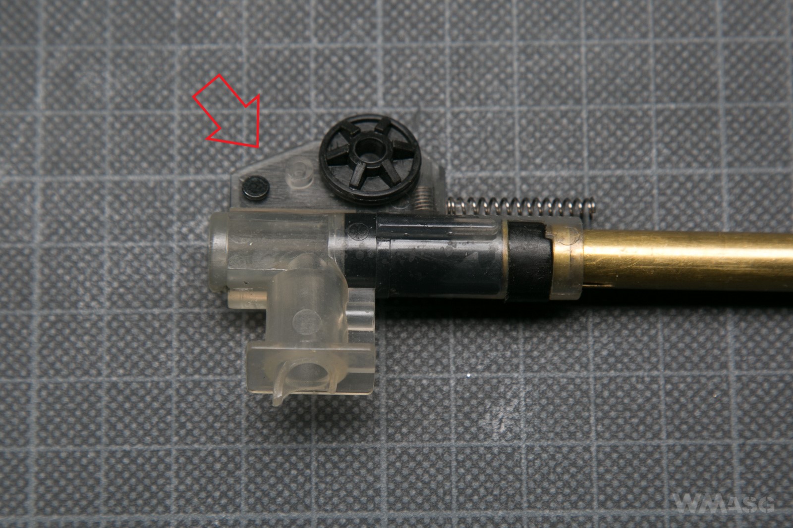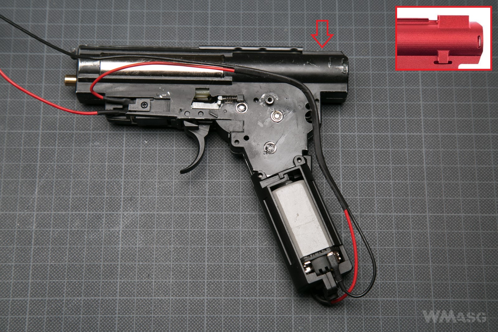 Mosiężna lufa o długości 125 mm i średnicy wewnętrznej 6,06 mm. Komora HopUp wykonana w przezroczystego bezbarwnego tworzywa. Regulacja pokrętłem. Gumka standardowa.