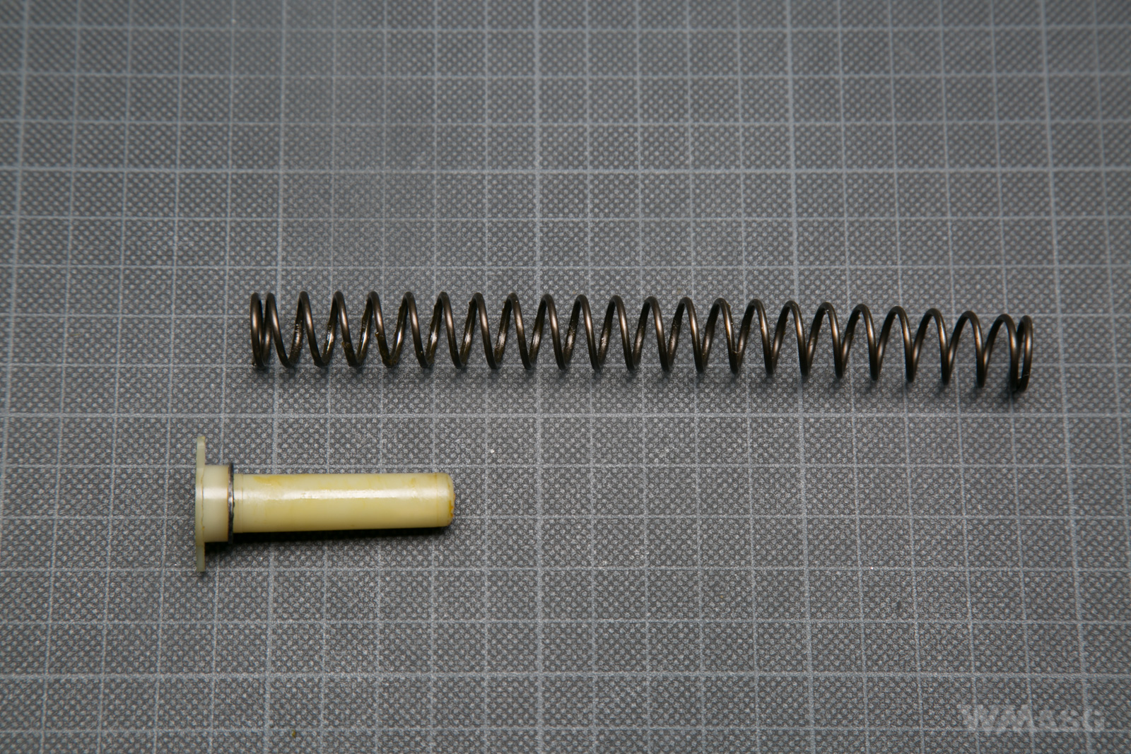 Sprężyna o regularnych zwojach i polimerowa prowadnica.