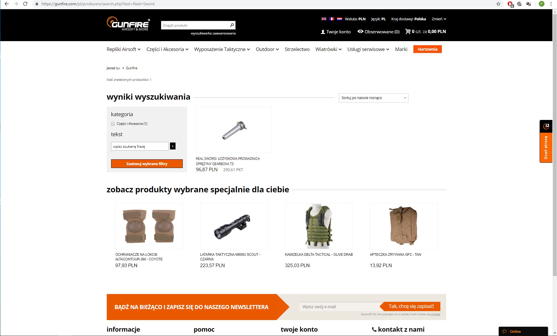 When asked Google about Real Sword products in Poland today it only showed the T3 gearbox (SVD) spring guide available at Gunfire. When I typed in "RS", only a grille for the Audi A4 popper out.