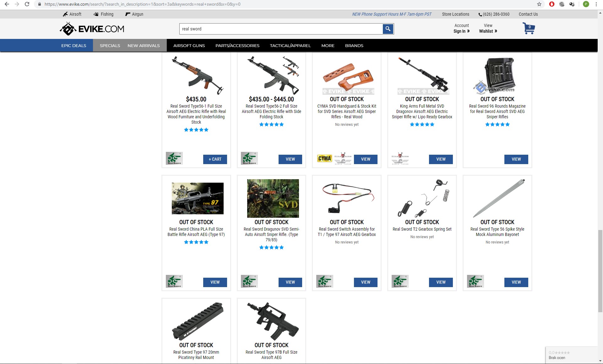 It turns out that this is not the only Real Sword product currently available at Evike. The number of products suggests that a new delivery has arrived in the store, but we have not found confirmation for this theory. These are the Real Sword products currently available in Evike: