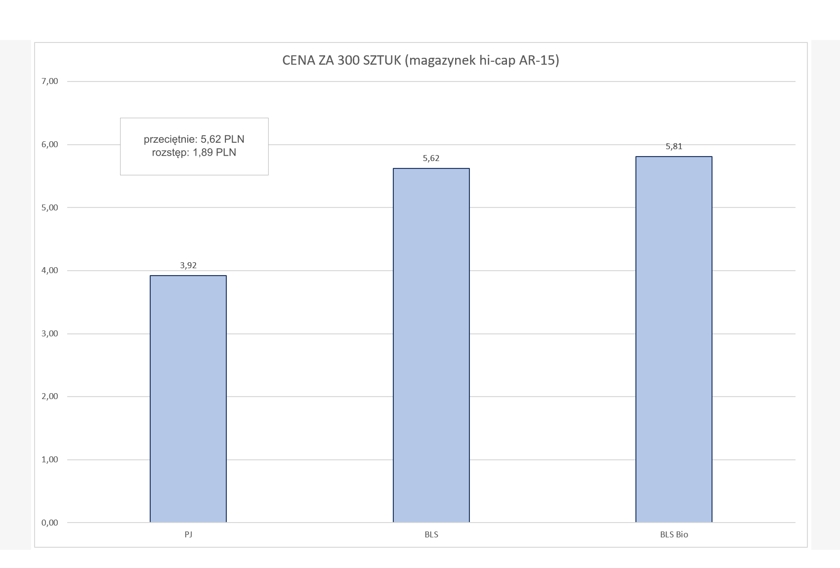 PRICE FOR 300 BBs (AR-15 type hi-cap magazine): average - 5.62 PLN, spread - 1.89 PLN