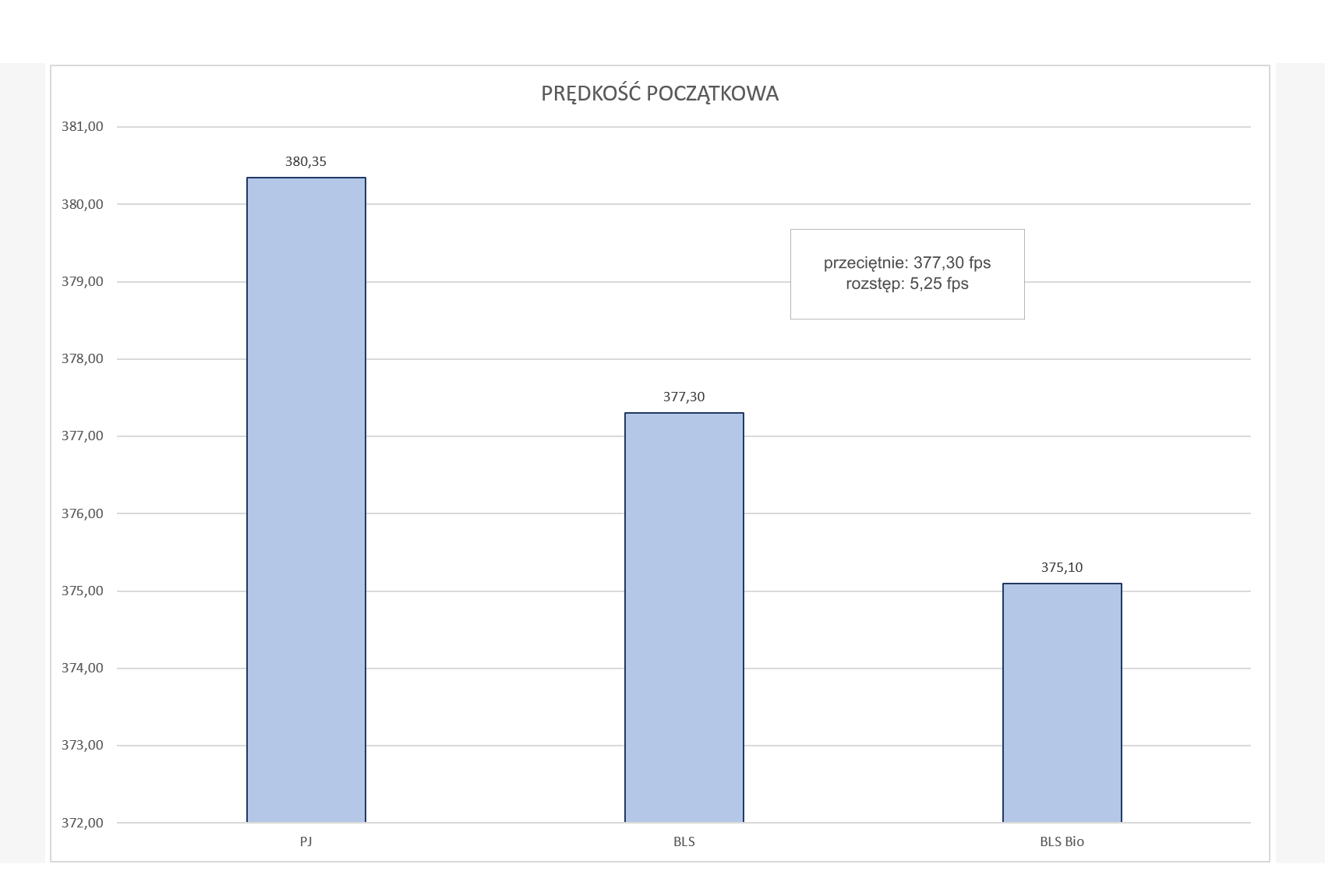 Muzzle velocity: average - 377.30 fps, spread - 5.25 fps