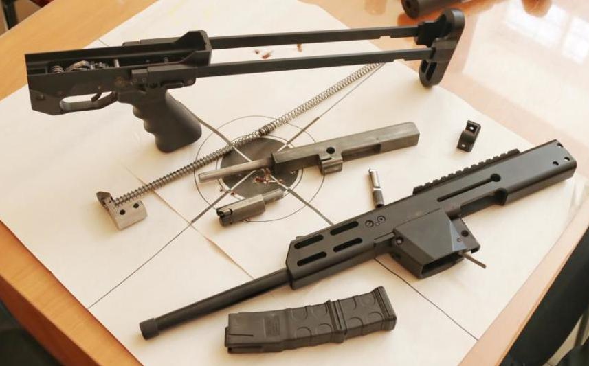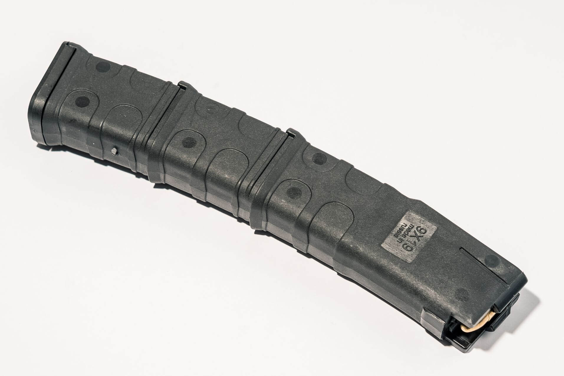 In the photographs, we can see a 9 mm PufGun magazine from which are also used in the Saiga-9 carbines.